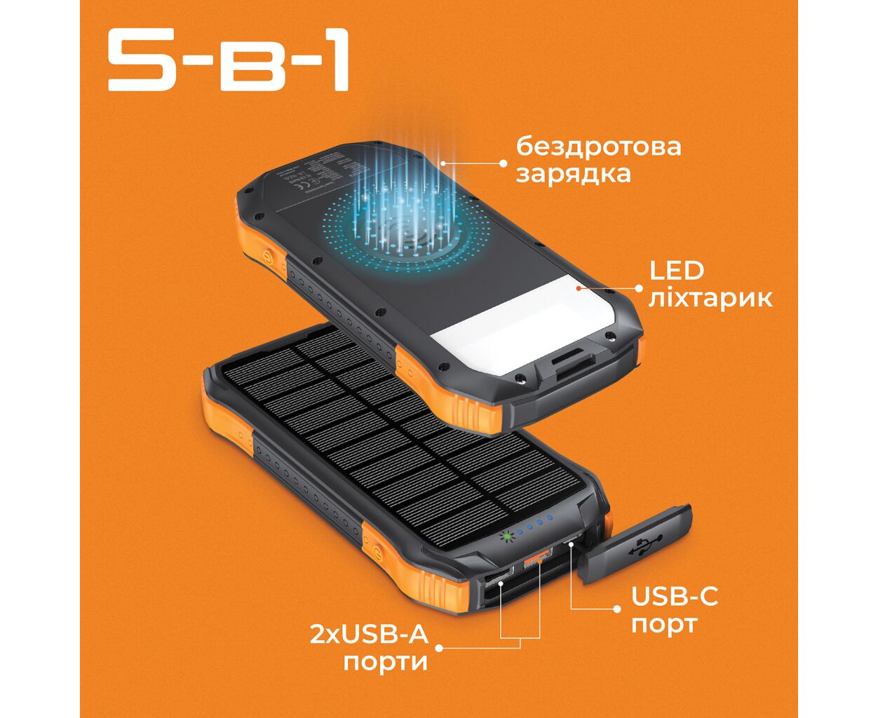 Батарея універсальна Promate 10000mAh PD/20W, QC/3/0, Solar, QI, IP65 (solartank-10pdqi.black)