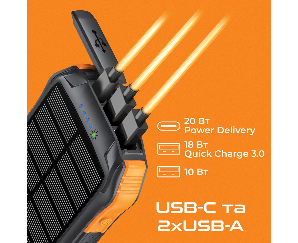 10000mAh PD/20W, QC/3/0, Solar, QI, IP65