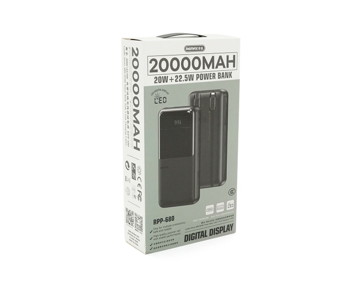 Батарея універсальна Remax 20000mAh, 22.5W, USB+Type-C+Lighting, Black (RPP-680)