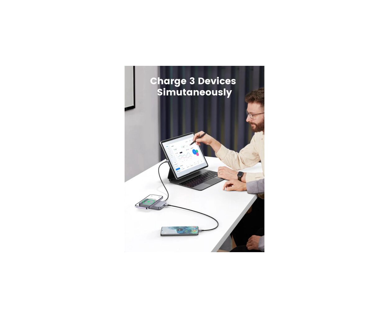 Заряджайте до трьох пристроїв одночасно. УМБ також оснащена портом USB Type-C з вихідною потужністю до 20 Вт та USB Type-А з потужністю до 22,5 Вт.