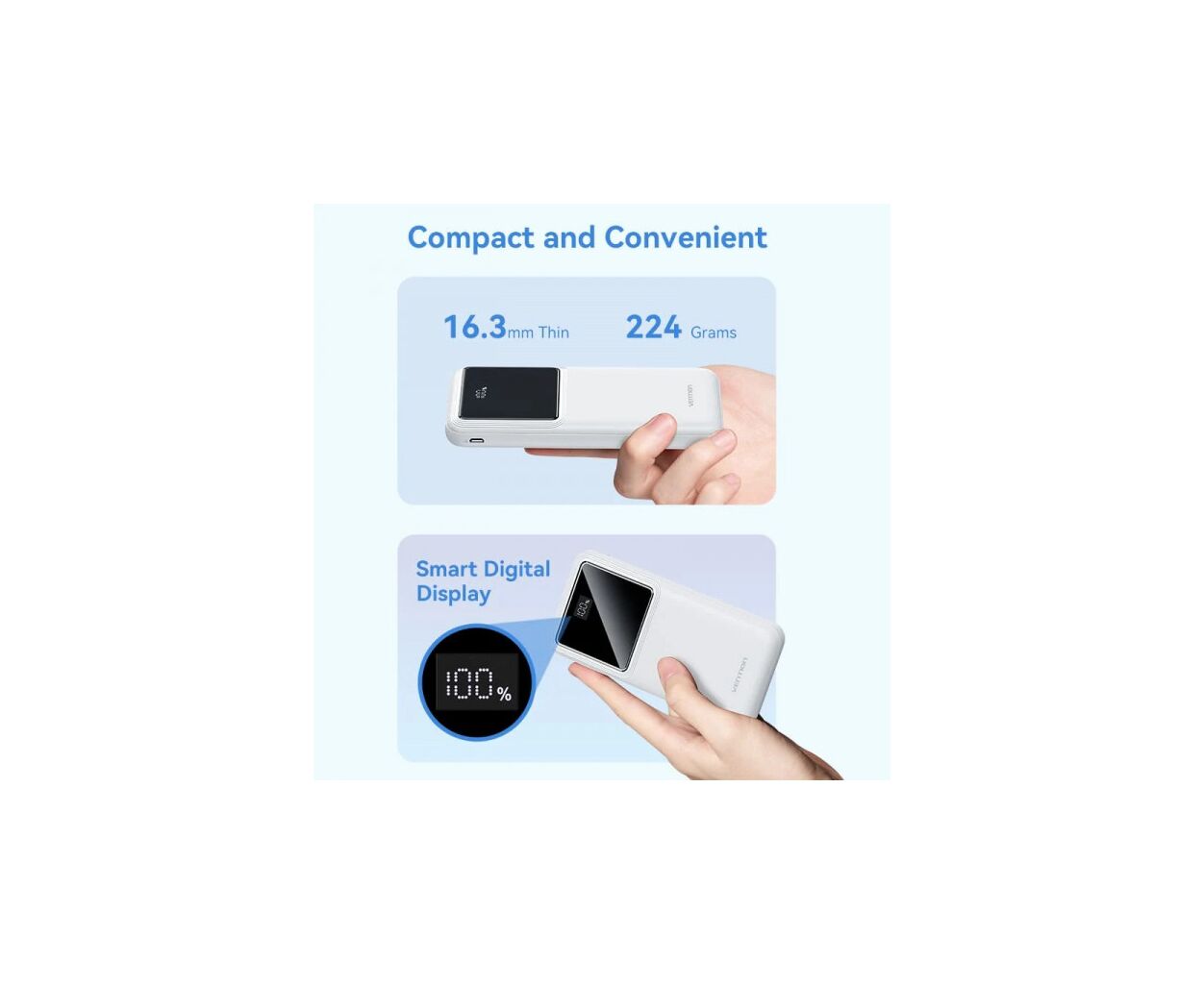 Опис Батарея універсальна Vention 10000mAh 22.5W 3A PD, QC/3.0, LED Display, White (FHKW0)