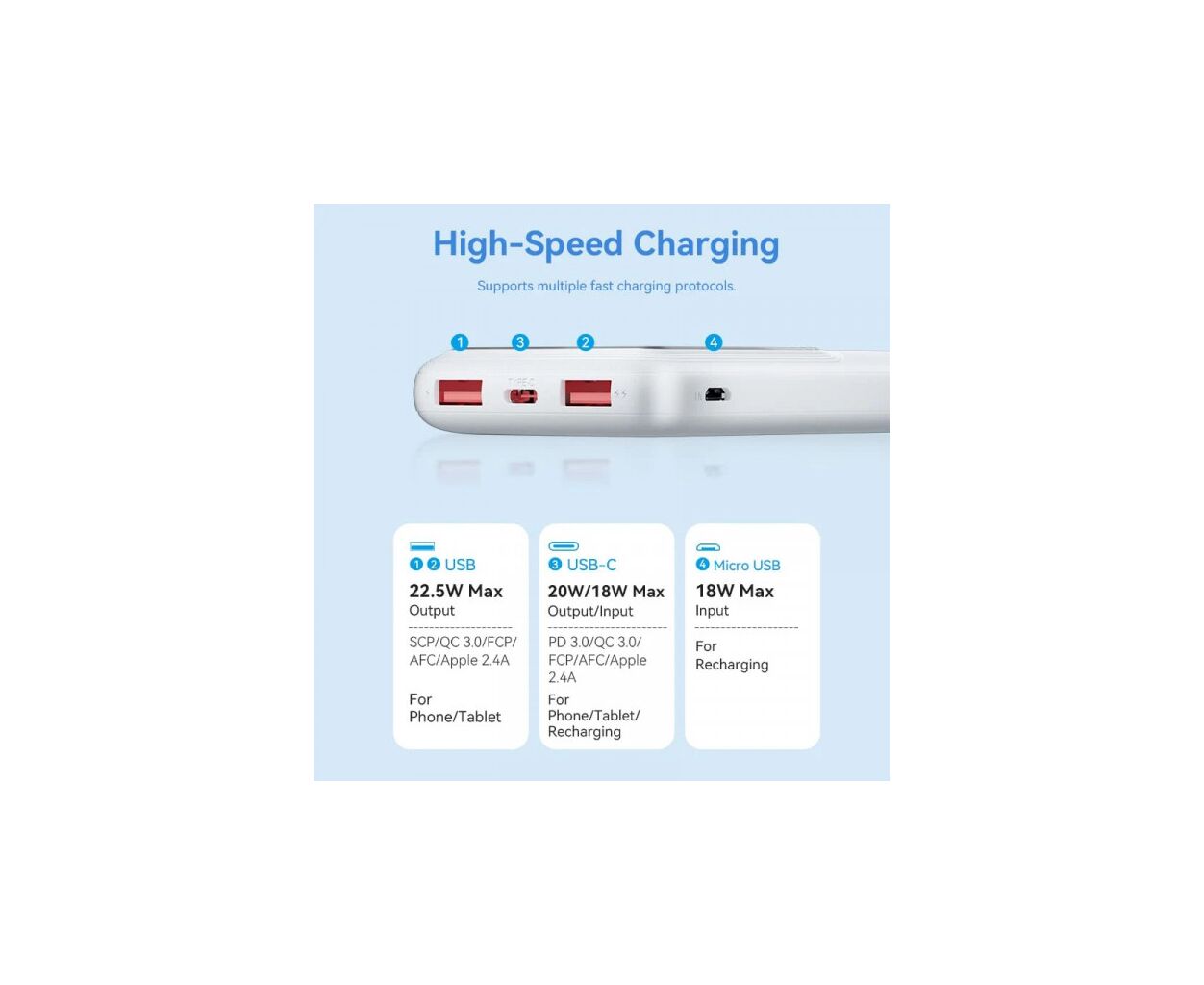 10000mAh 22.5W 3A PD, QC/3.0, LED Display, White