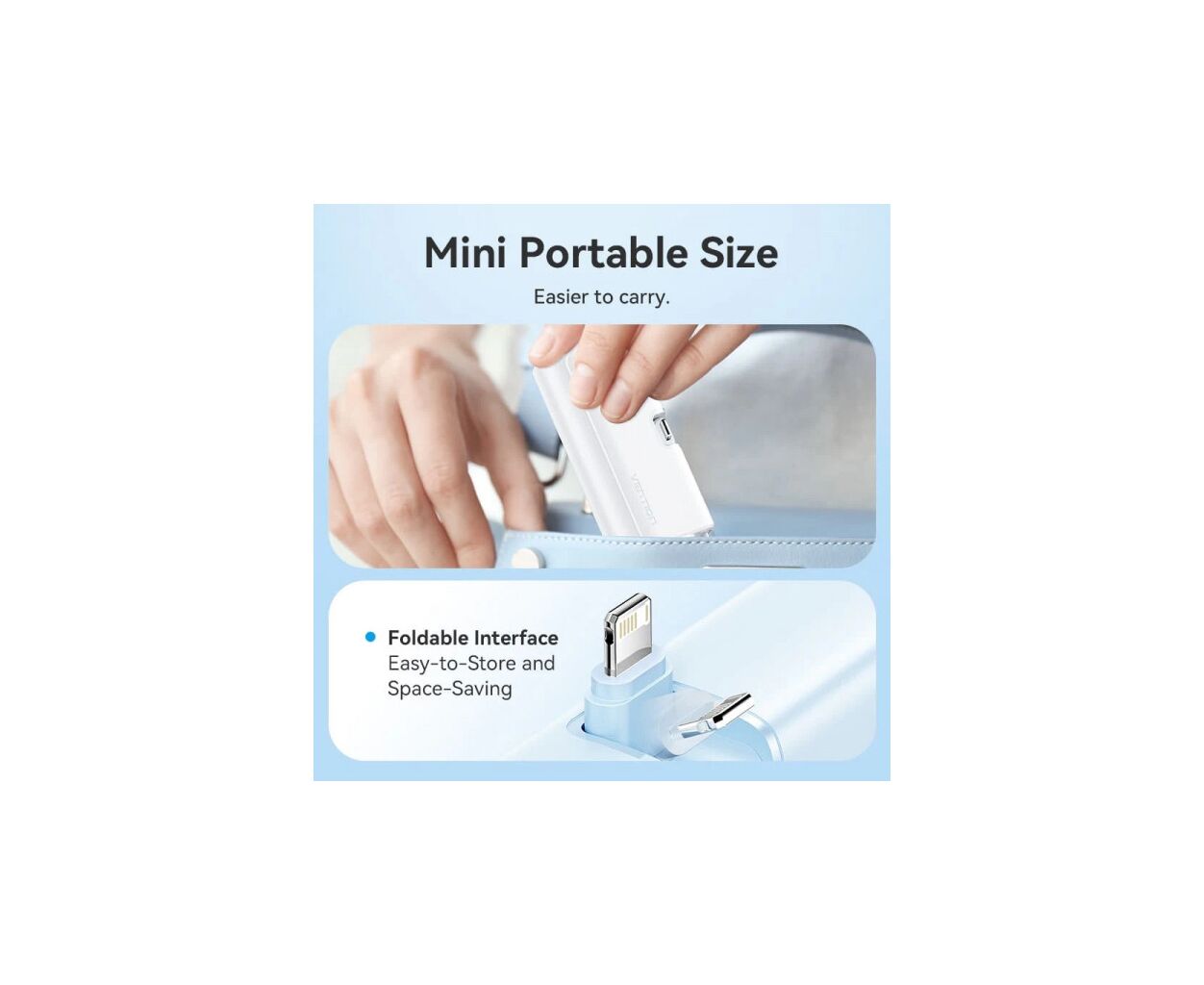 Мініатюрний корпус УМБ Vention 4800mAh 22,5W PD розміром 81,8х38,4х30 мм та вагою 116 грам робить її зручною для зберігання та перенесення.