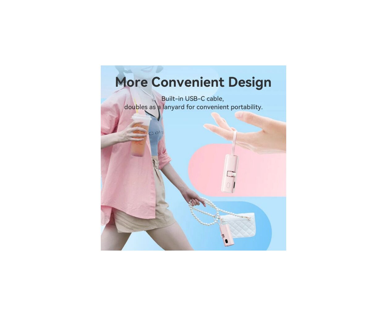 Порт USB Type-С працює з максимальною вихідною потужністю 20 Вт, та з потужністю до 18 Вт на вхід. Кабель Lightning зарядить підключені пристрої з потужністю до 12 Вт, а кабель USB Type-С – з максимальною потужністю 22,5 Вт. Вбудований LED дисплей сповіщатиме про поточний рівень заряду.