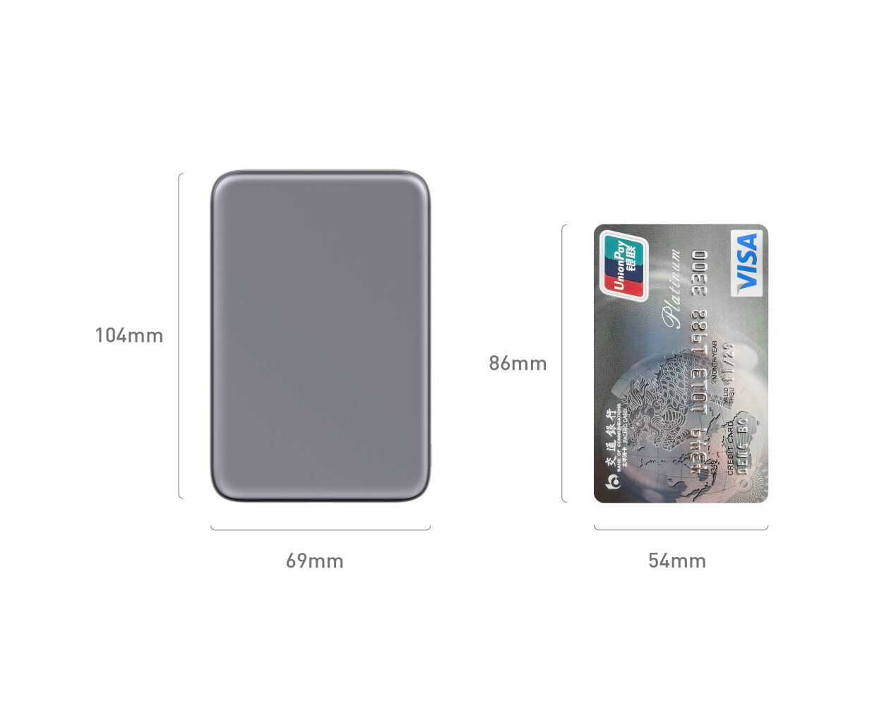 Ємність - 5000 mAh, електрохімічна система - Li-pol, Джерело заряду батареї - USB, інтерфейси підключення (вихід) - USB Type-C, Wireless Charger, вихідний струм - 3 A, 2 A, 2.22 A, 1.67 A, розмір - 104 х 69 х 9.6 мм, матеріал корпусу - вогнетривкий пластик, вага - 115 г, Колір - чорний