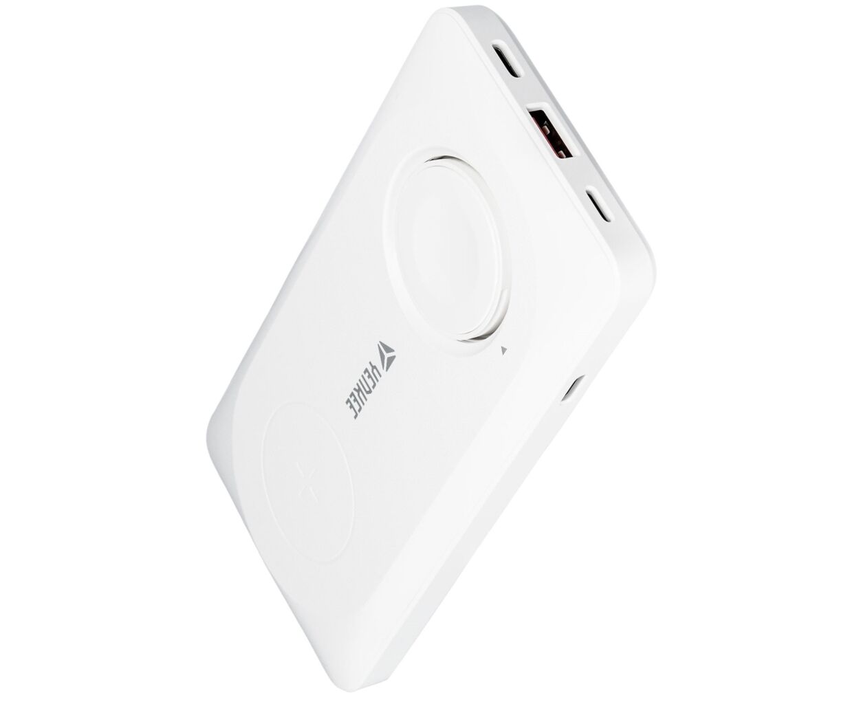 До павербанку YENKEE YPB 510 3 в 1 можна під'єднати до 3 різних пристроїв одночасно, щоб заощадити час. Максимальна потужність зарядки становить до 22,5 Вт для USB-A, 7,5 Вт для Type-C, 2,5 Вт для фліп-зарядного пристрою для Apple Watch і 15 Вт для бездротової зарядки з технологією MagSafe. Остання може відцентрувати телефон для ефективнішої зарядки. Інтелектуальний чіп оцінює ідеальну вихідну потужність і стежить за тим, щоб не допустити перезарядки.