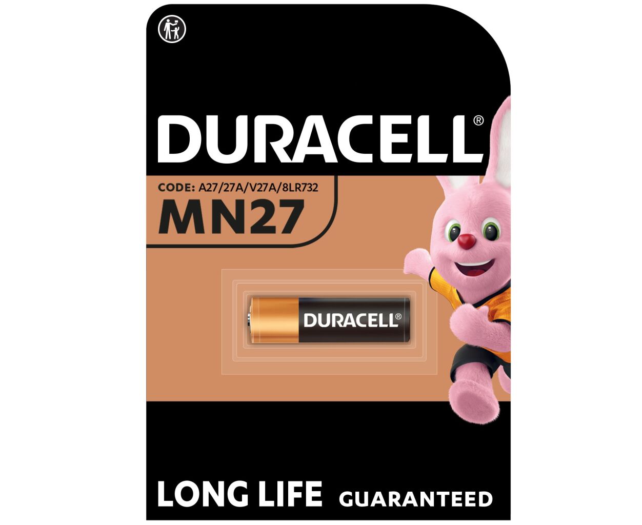 Опис Батарейка Duracell MN27 12V спеціалізована лужна, A27/27A/V27A/8LR732, 1 шт. в упаковці (5007388)