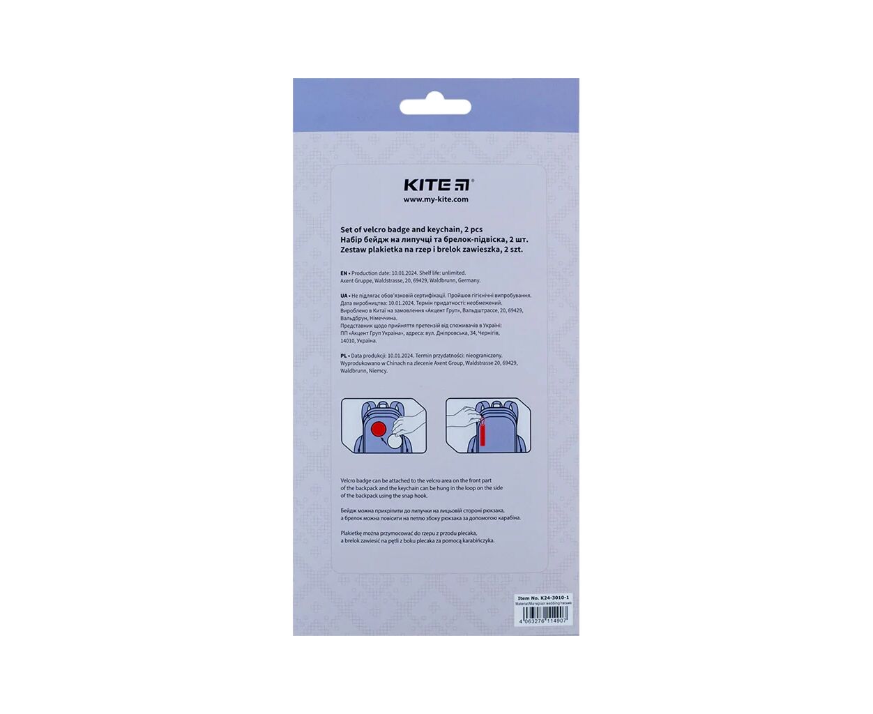 Опис Бейдж Kite набір на липучці та підвіска Be Ukraine (K24-3010-1)