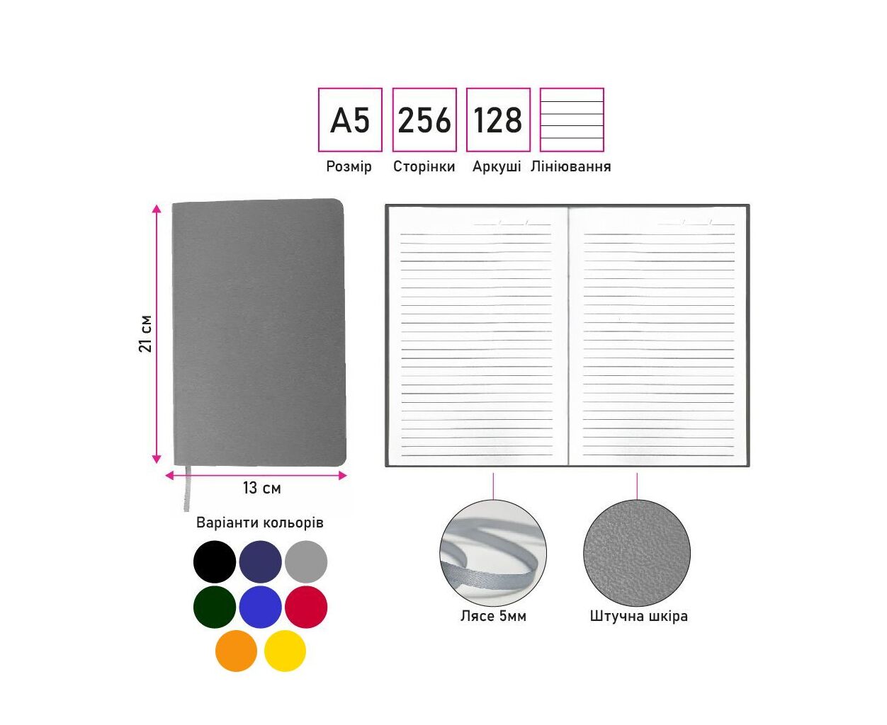 лініювання - лінія, кількість листів - 256, Колір - синій