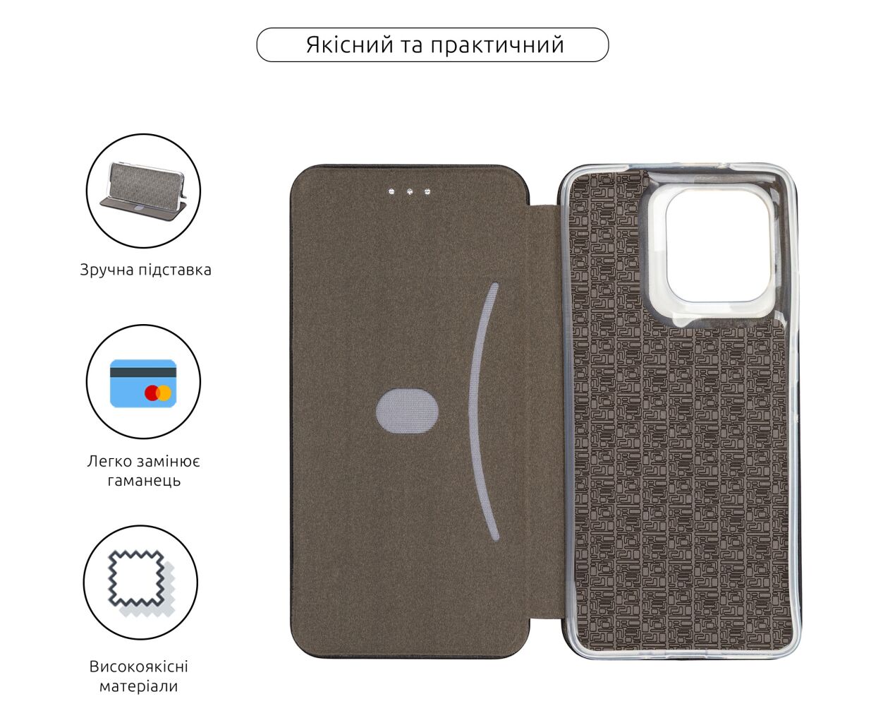 Магнітна застібка щільно фіксує верхню частину чохла, на якій розташовується металева накладка — завдяки цьому мобільний пристрій завжди захищений від небажаного потрапляння бруду, вологи та пилу.