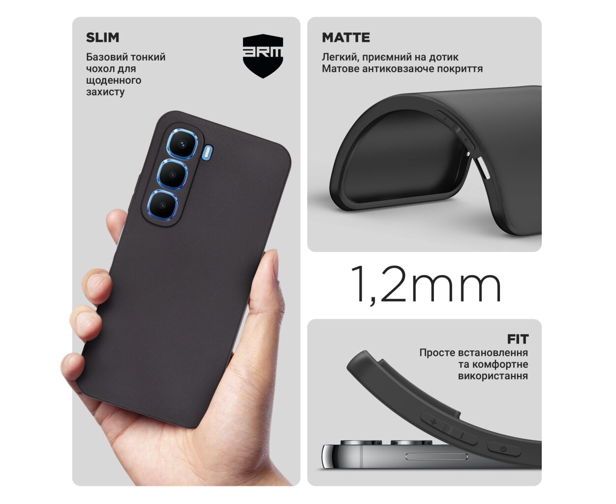 Чохол ArmorStandart Matte Slim Fit - це базовий захисний чохол для смартфона, який поєднує в собі простоту та ефективний захист. Виготовлений із термопластичного поліуретану (TPU), він забезпечує надійний захист вашого пристрою від подряпин, потертостей і ударів, зберігаючи його компактність і легкість.