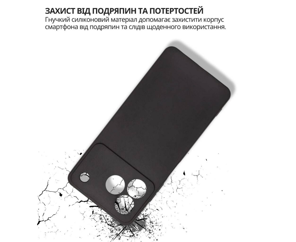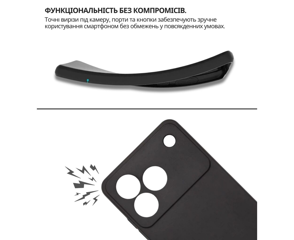 сумісність з моделями - ZTE Blade A76, Тип чохла для телефону - накладка, Призначення - модельний, Матеріал - силікон, Колір - чорний