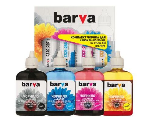 Сумісні чорнила торгової марки Barva використовуються для заправки струменевих картриджів, СНПЧ і ПЗК.