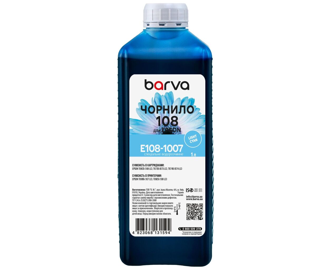 Опис Чорнило Barva Epson 108 1 л, light cyan, special (E108-1007)