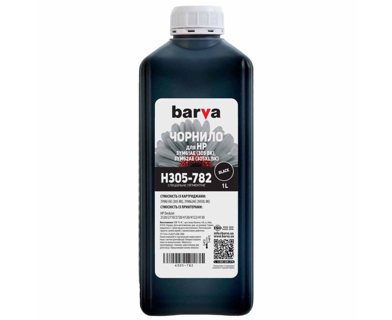 Характеристики Чорнило Barva HP 305 1 л, Black Pigmented (H305-782)