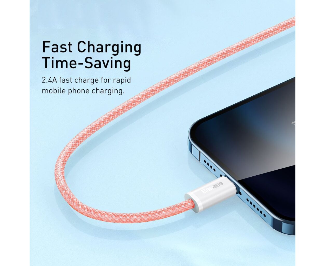 Кабель Lightning від бренду Baseus. Доступний у яскравому кольорі, тому буде чудово поєднуватися з іншими аксесуарами гаджетів.
