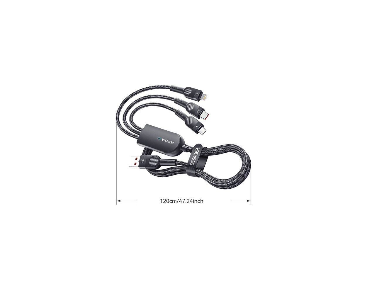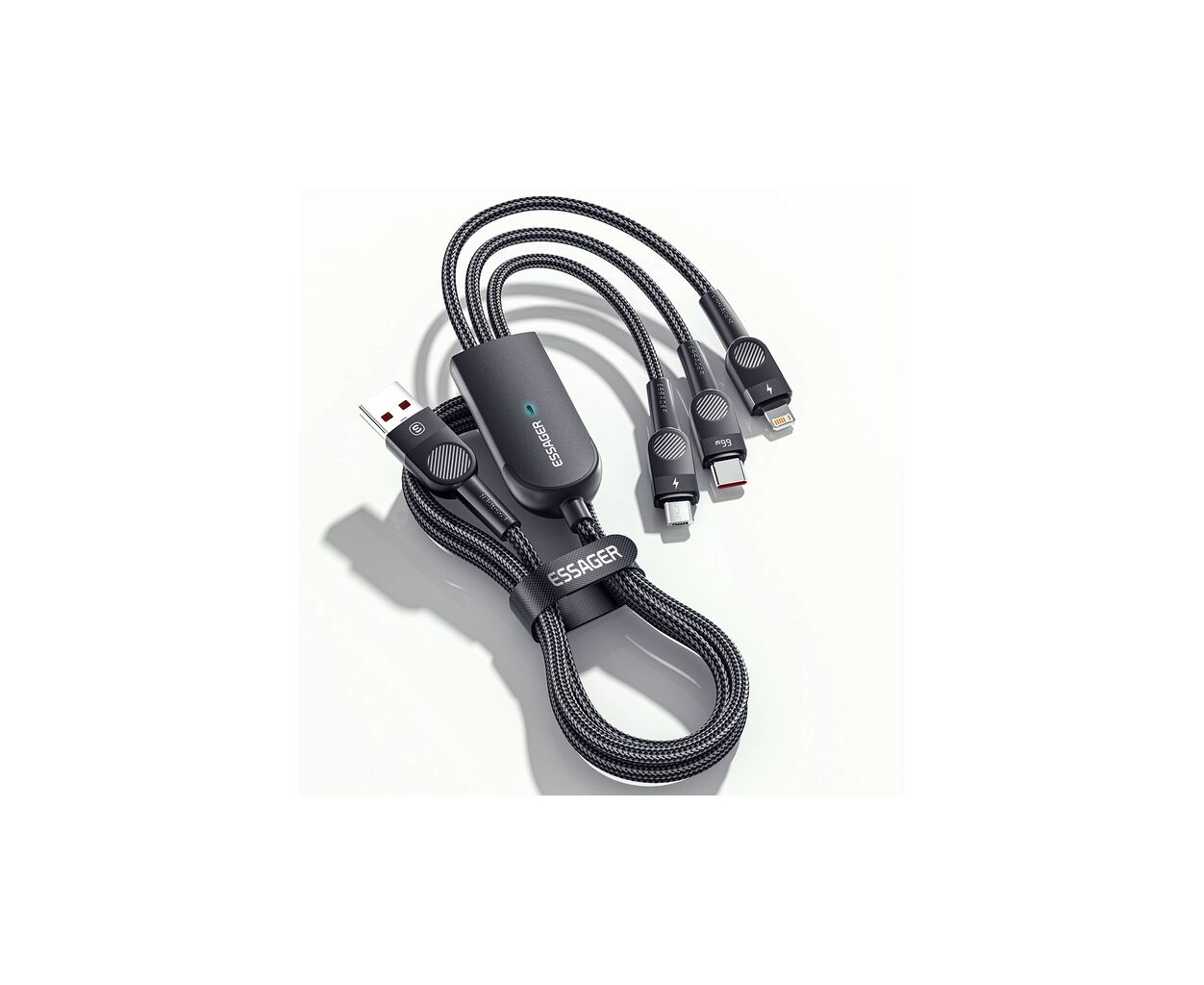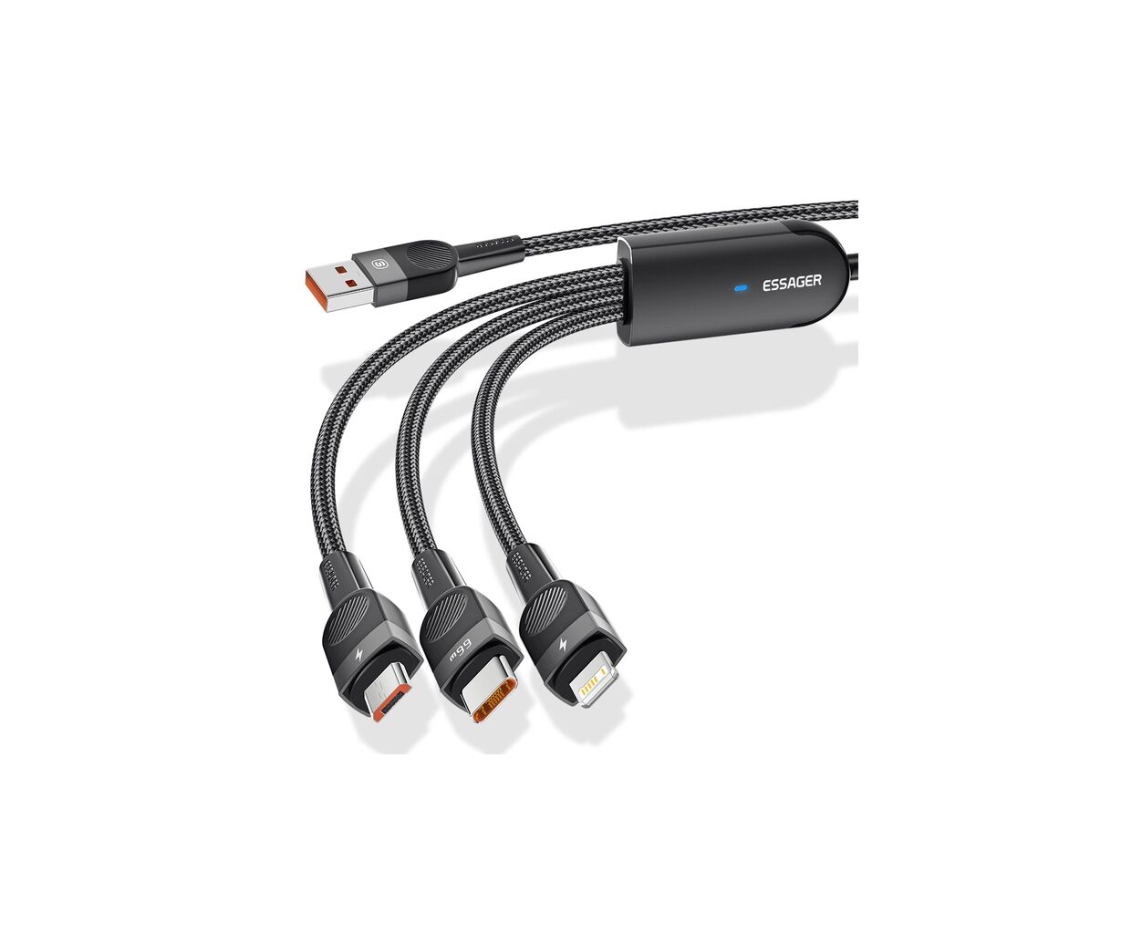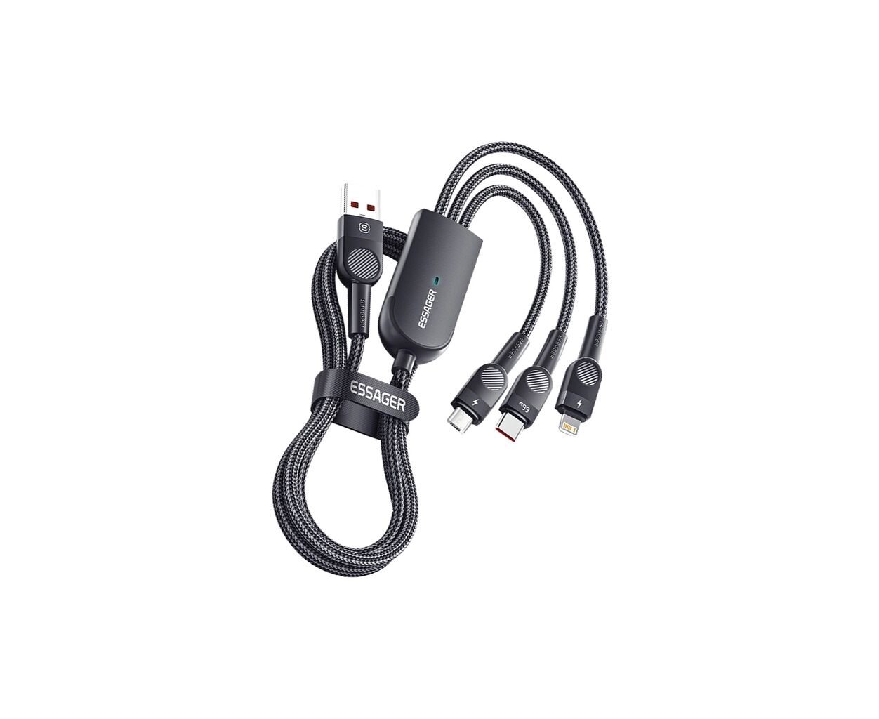 Дата кабель USB 2.0 AM to Lightning + Micro 5P + Type-C 1.2m 66W black Essager (EXCMTL-XJ01)