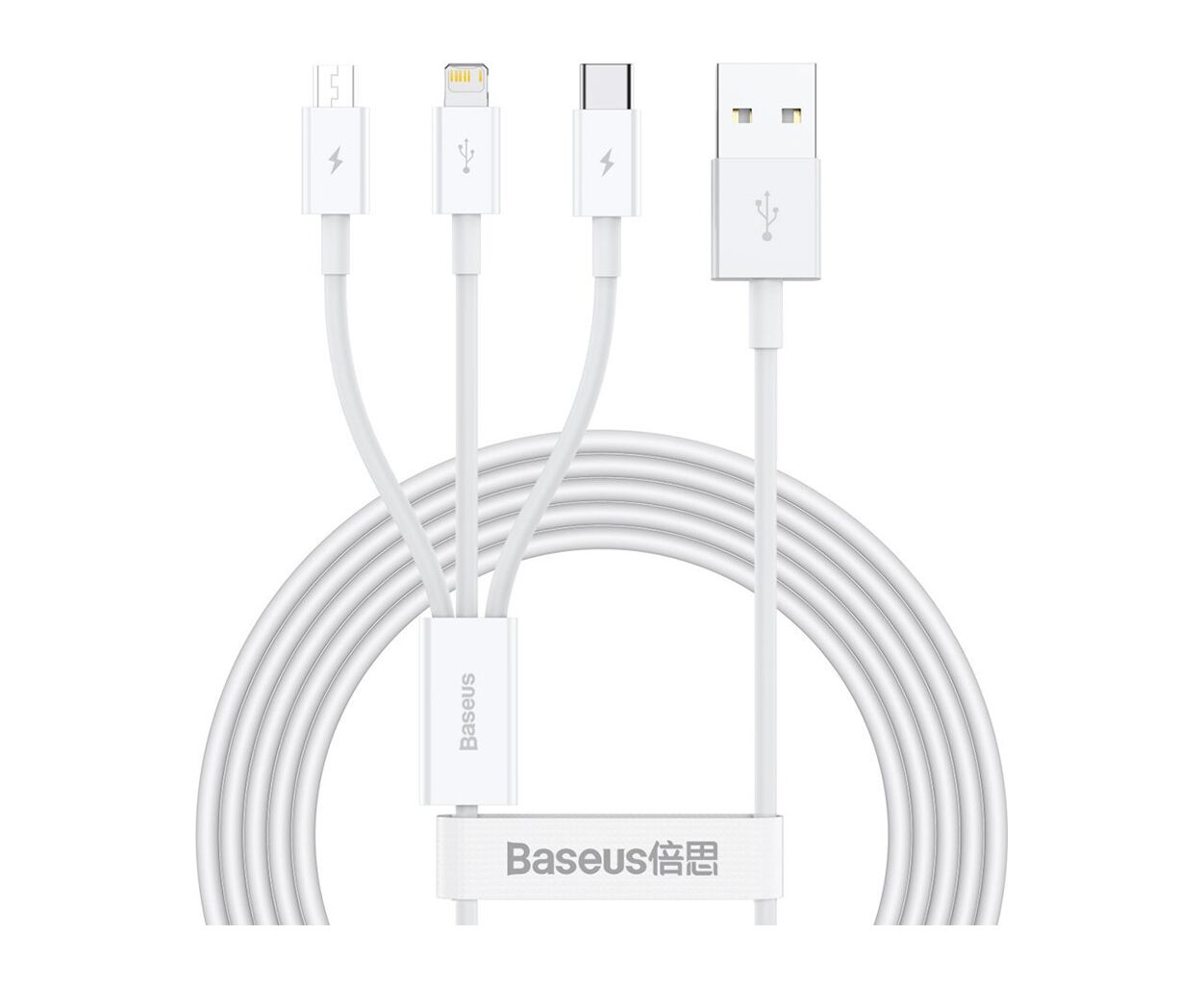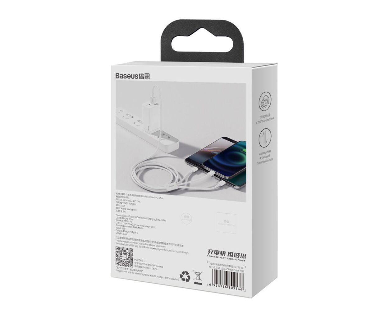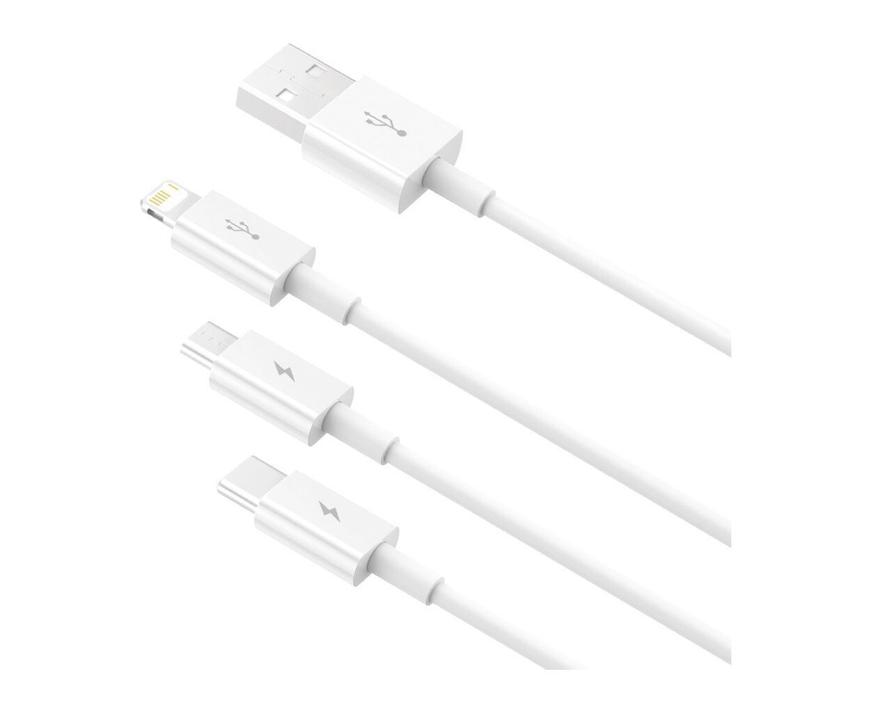 Опис Дата кабель USB 2.0 AM to Lightning + Micro 5P + USB-C 1.5m 3.5A white Baseus (CAMLTYS-02)