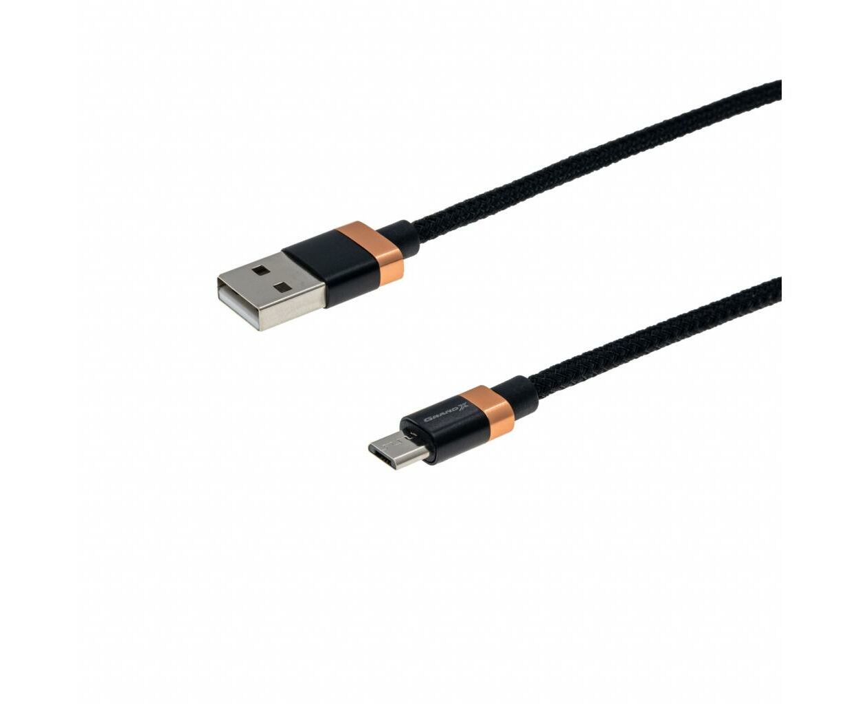 Тип - кабель, Тип конектора 1 - USB 2.0, Тип конектора 2 - micro USB, довжина - 1 м, Номінальний струм - 3 А, тканинне обплетення, Колір - чорний