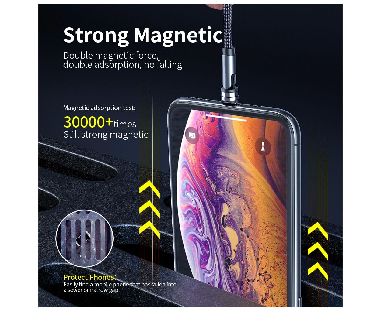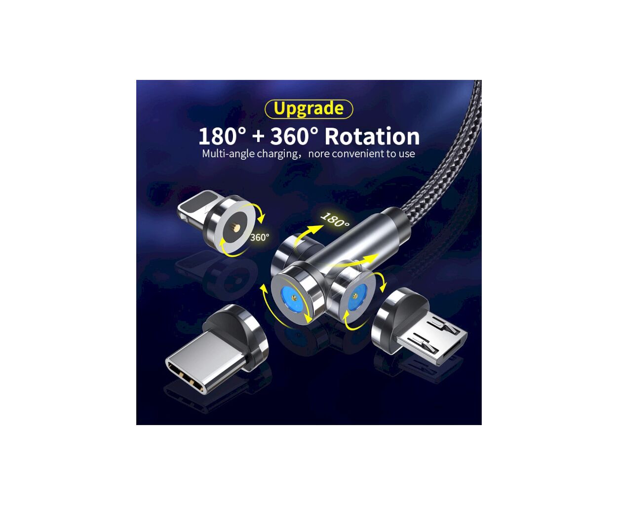- Магнітний кабель із поворотом на 540 градусів (360° + 180°)