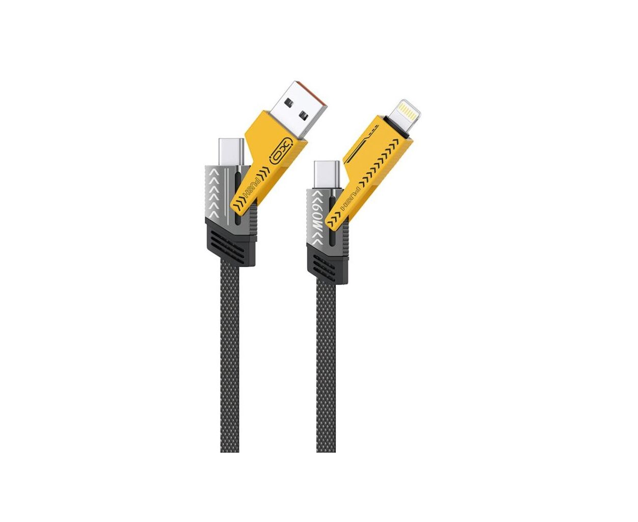 Дата кабель USB 2.0 AM to USB-C + USB 2.0 AM to Lightning 1.0m 60W black XO (NB283_4-in-1_Black)