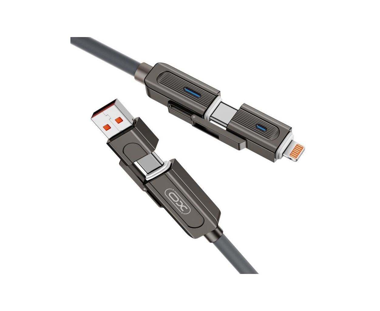 Дата кабель USB 2.0 AM to USB-C + USB 2.0 AM to Lightning 1.0m 60W gray XO (NB275_4-in-1_Gray)