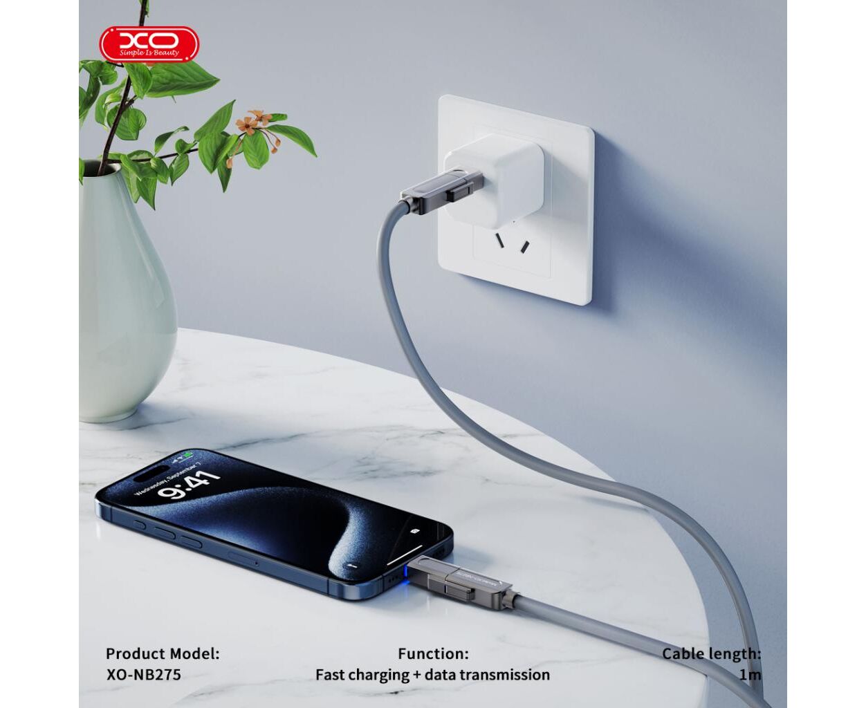 Характеристики Дата кабель USB 2.0 AM to USB-C + USB 2.0 AM to Lightning 1.0m 60W gray XO (NB275_4-in-1_Gray)