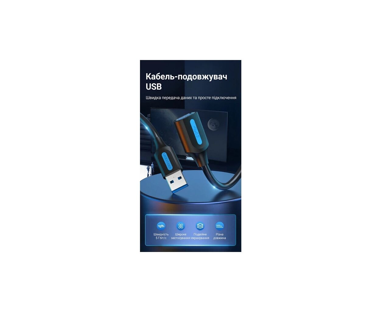 Подовжувальний кабель Vention USB 3.0 пропонує практичне та високопродуктивне рішення для збільшення радіуса дії ваших існуючих USB-з'єднань. Розроблений із значною довжиною 3 метри, цей кабель дозволяє легко підключати периферійні пристрої, такі як принтери, камери, клавіатури, миші та зовнішні жорсткі диски, які можуть знаходитися далеко від вашого комп'ютера або телевізора. Переміщуючи USB-порт у більш доступне місце, він усуває необхідність протискатися за меблями або повзати під столами, щоб підключити пристрої. Кабель має елегантний чорний дизайн, виготовлений з міцних матеріалів, що гарантує його гармонійне вписування в будь-який сучасний дім або офіс, забезпечуючи при цьому можливості високошвидкісної передачі даних, характерні для стандарту USB 3.0.