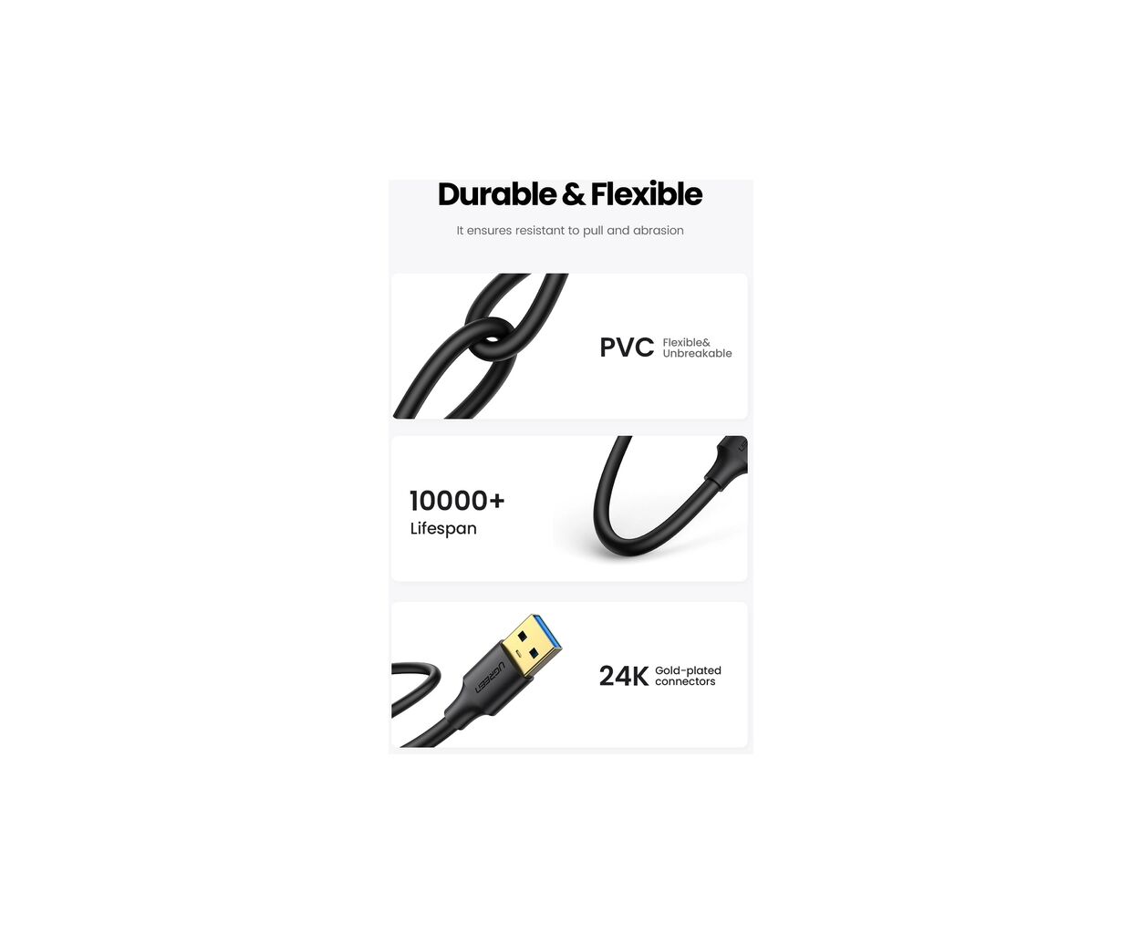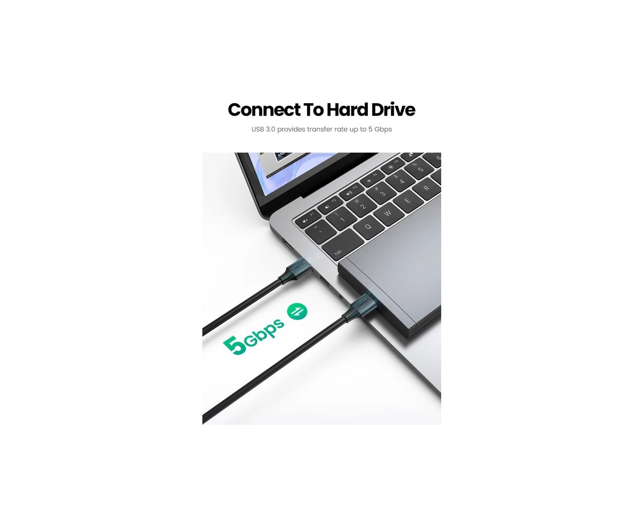 Кабель Ugreen US128 USB-A 3.0 1 м Чорний (10370) підключає периферійний пристрій USB з портом USB 3.0 типу A до комп'ютера для швидкої передачі файлів. Він діє як розширення для з'єднання USB 3.0.