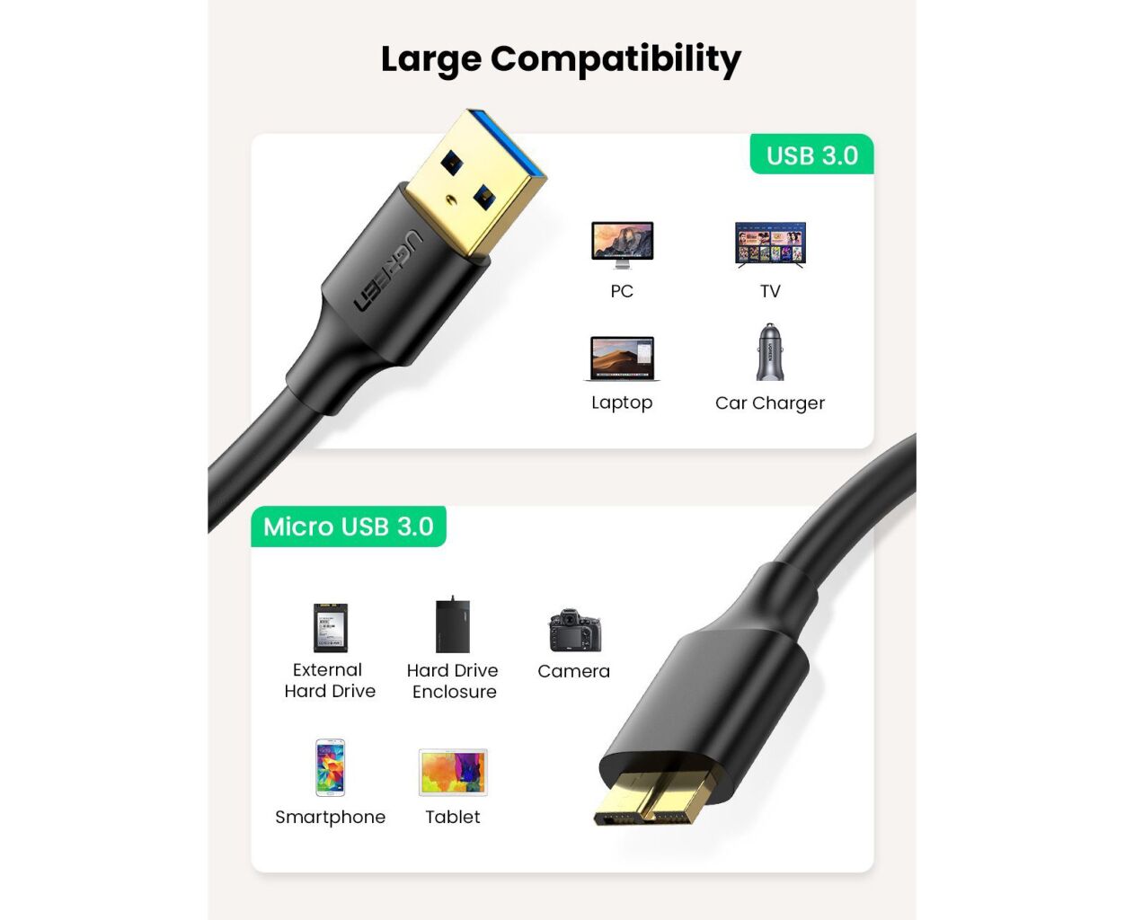 Відгуки про Дата кабель USB 3.0 AM to Micro B 0.5m US130 black Ugreen (10840) від реальних покупців