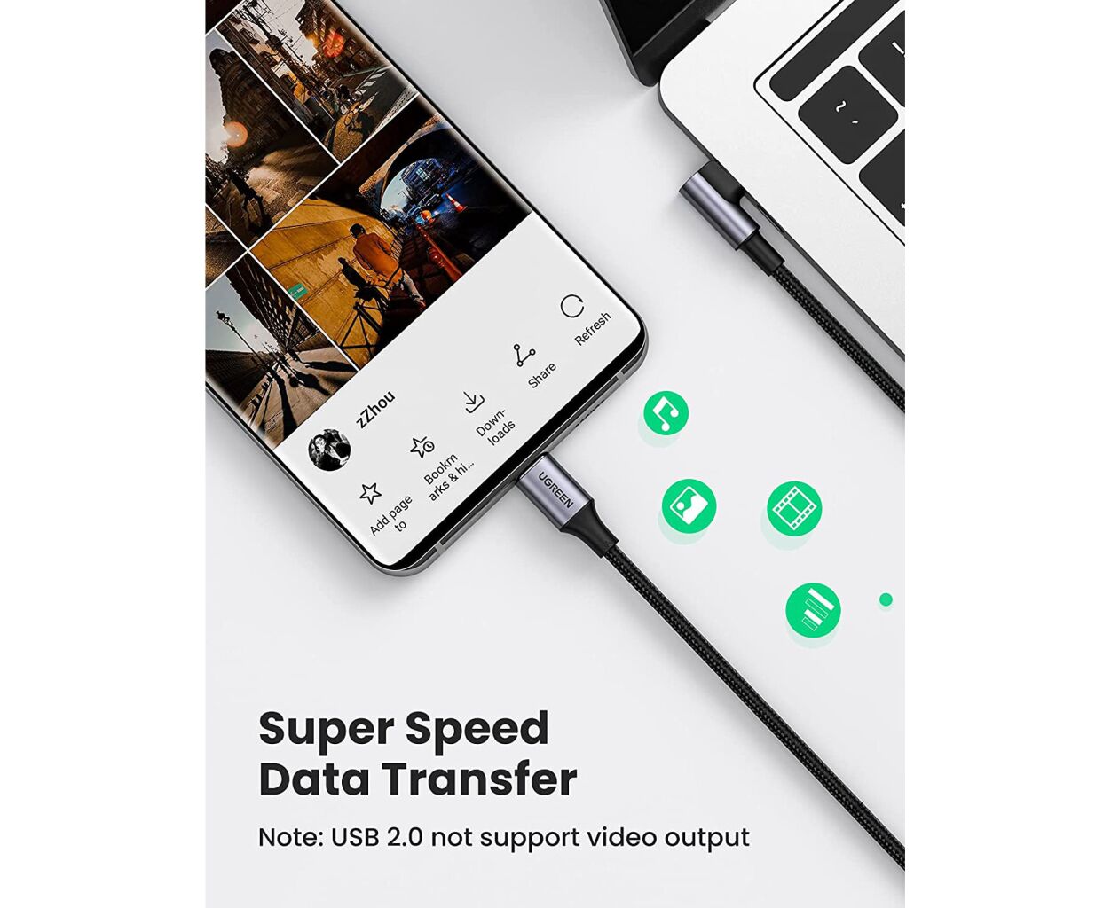 Відгуки про Дата кабель USB-C 2.0 to USB-C 1.0m 90° corner US334 black Ugreen (70643) від реальних покупців