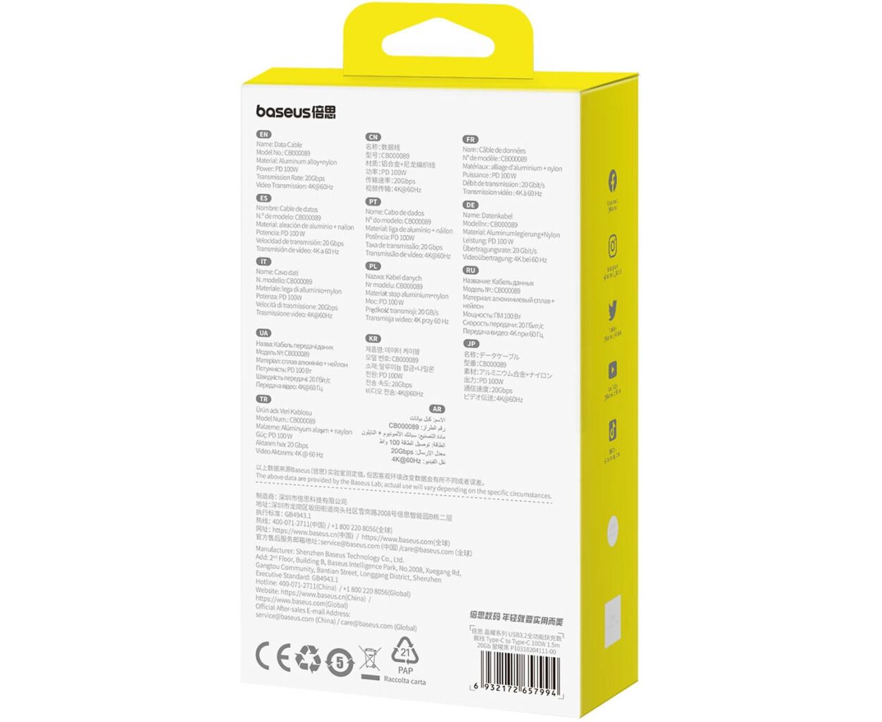 Опис Дата кабель USB-C to USB-C 1.5m 100W USB3.2 20Gb black Baseus (P10318204111-00)