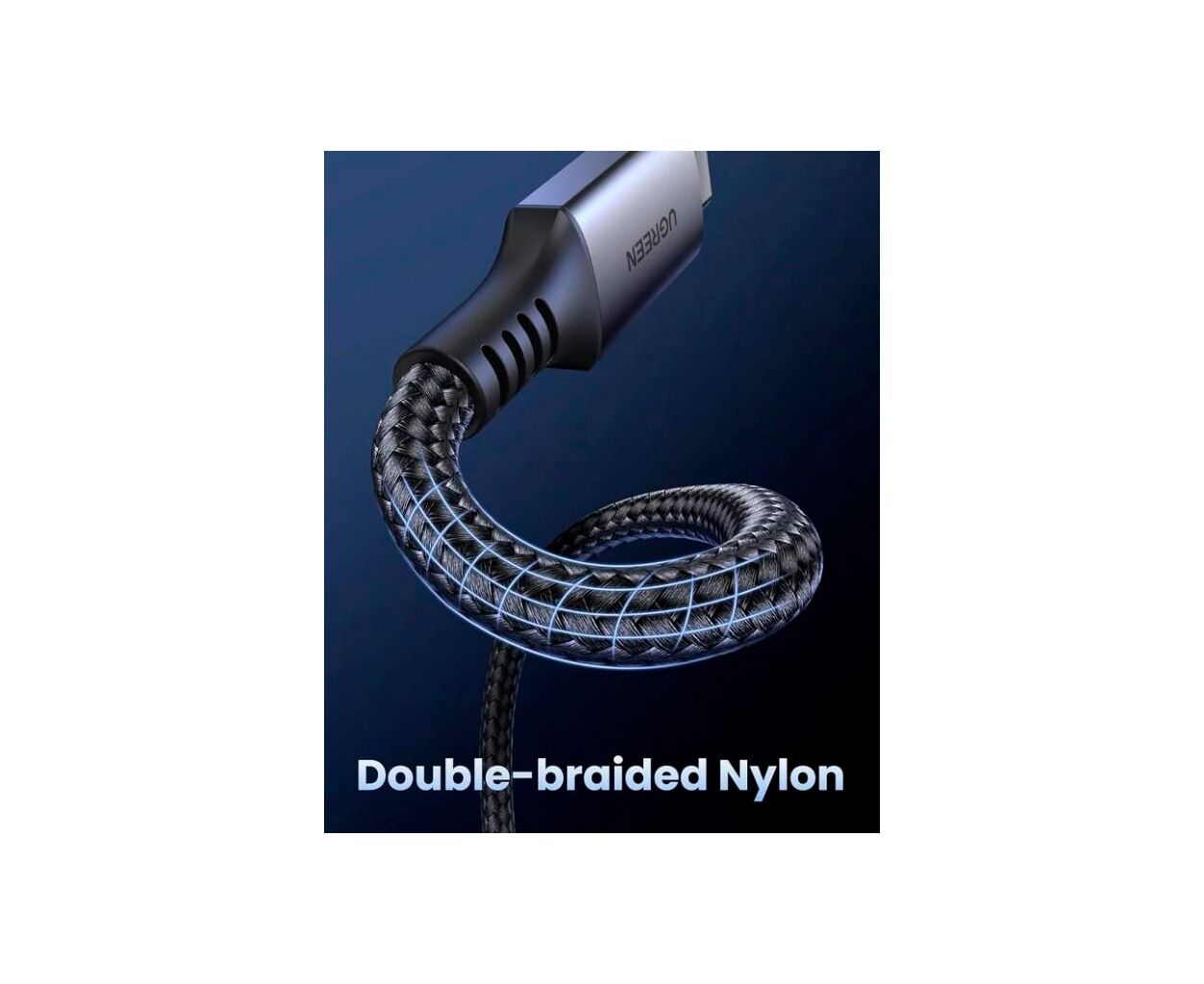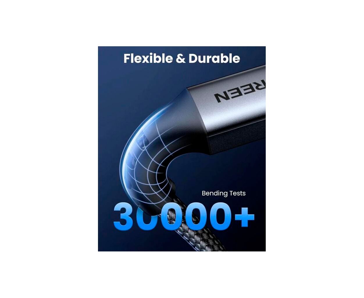 Кабель UGREEN USB C - USB C з нейлоновою оболонкою витримує понад 30 000 випробувань на вигин, ефективно запобігаючи розриву кабелю при щоденному використанні.