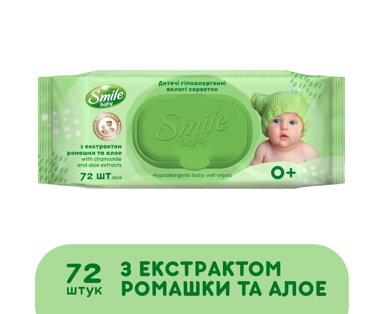 Дитячі вологі серветки Smile baby з екстрактом ромашки, алое і вітамінним комплексом з клапаном 72 шт (4823071653984)