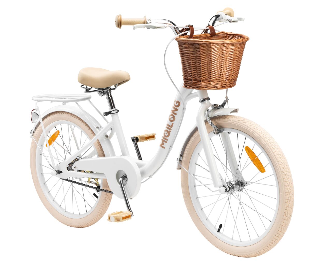 Велосипед для дітей Miqilong LS 16 - це втілення сучасного уявлення про ретро дизайн. Використання фарбування у стилі 50-х років ХХ століття та корзинки ручної роботи з натурального ротангу роблять дизайн велосипеда вишуканим та елегантним.