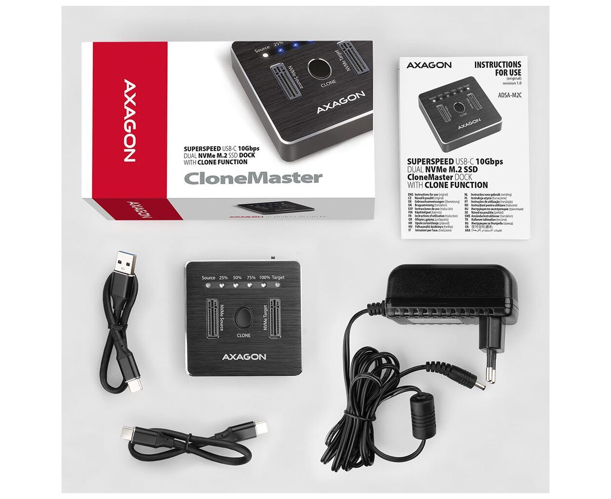 Док-станція для накопичувачів AXAGON SuperSpeed USB-C 10 Gbps dual M.2 NVMe (ADSA-M2C)