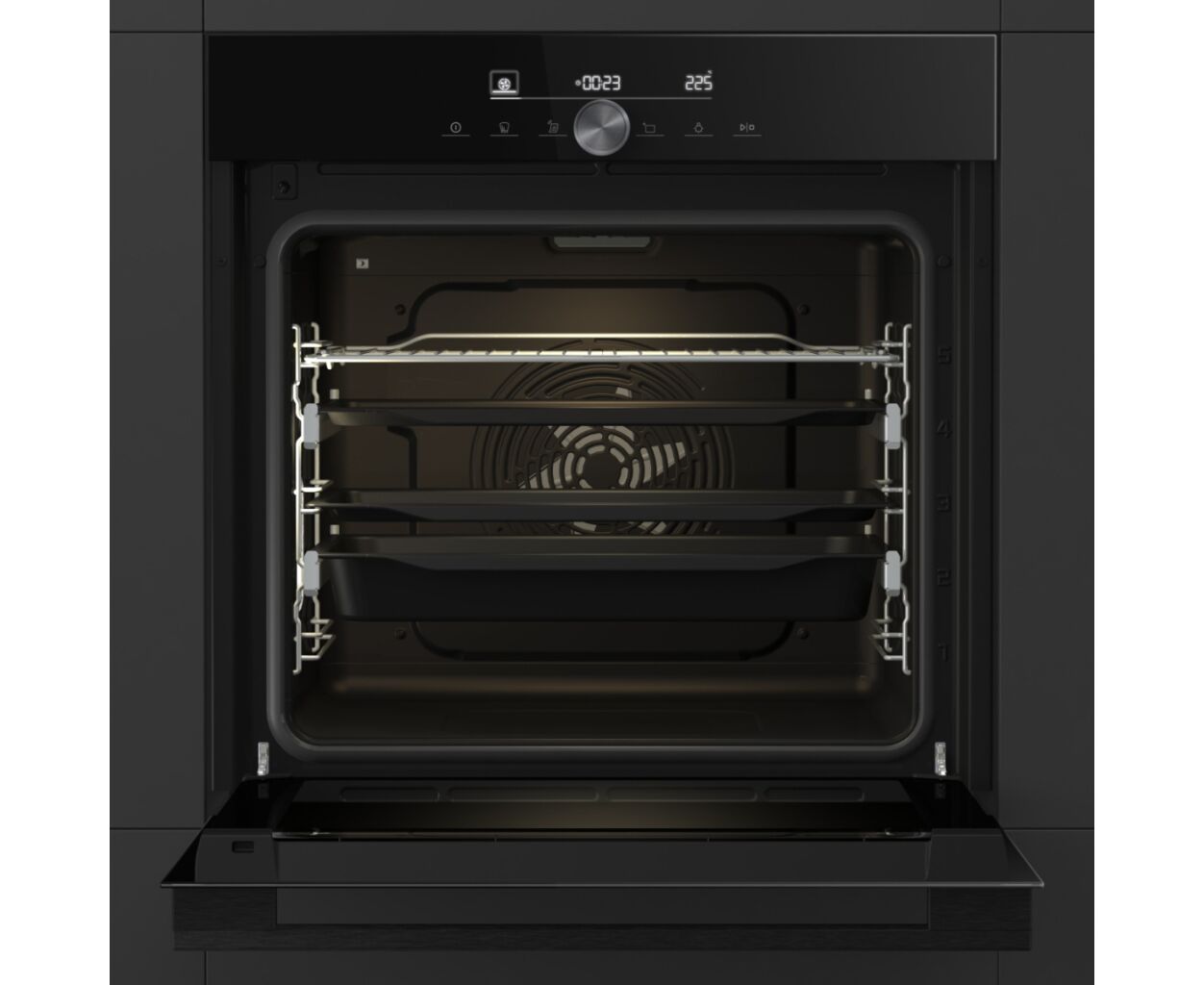 Тип - електрична, Управління - сенсорне, об'єм - 77 л, 59.5 х 59.5 х 56.4 см, чорний