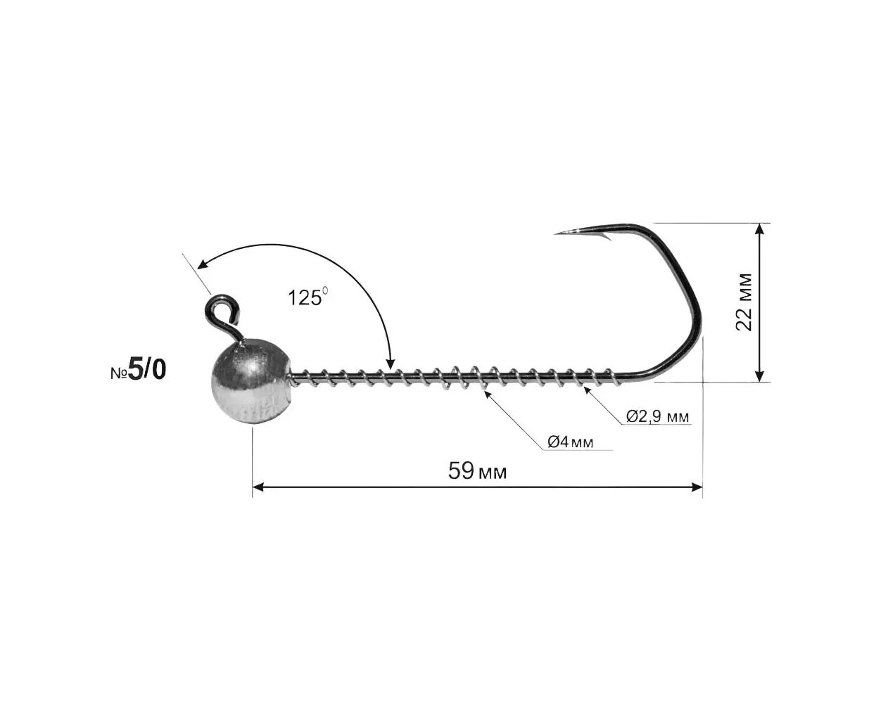 Вушко джиг головки загнуто під кутом 125 °, це дозволяє робити більш плавну проводку при відриві приманки від дна і опусканні її назад. Гострий гачок і загнутість вушка забезпечують ефективні підсічки і надійне утримування спійманого трофея.