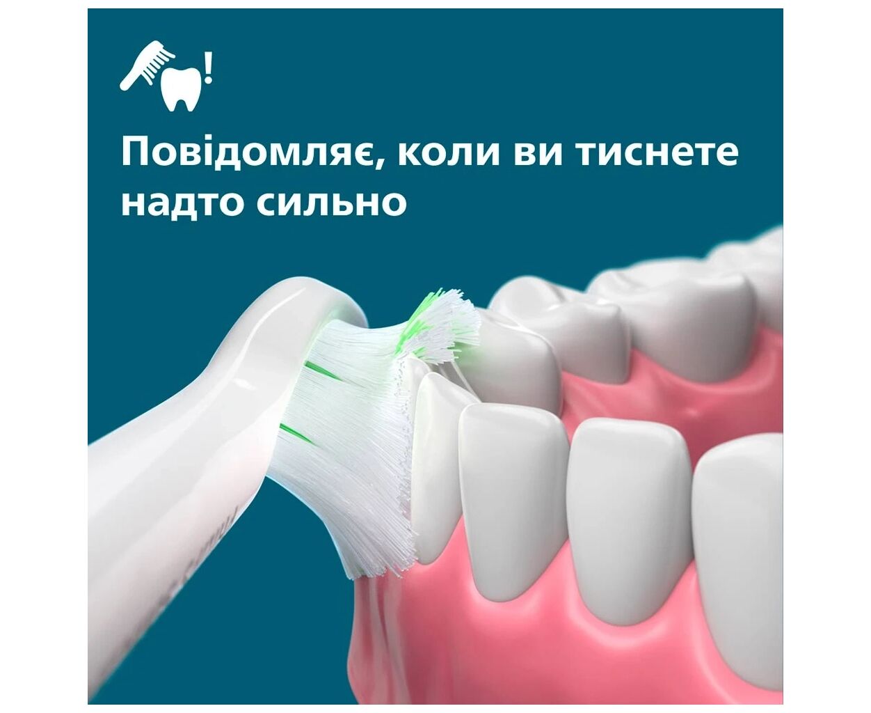 Не завжди можна помітити, що ви надто сильно натискате на зуби під час чищення, але електрична зубна щітка Philips це відчує. У разі надто сильного натиску на ясна, зубна щітка подаватиме пульсуючий звук, одночасно зменшуючи вібрацію, щоб попередити вас про необхідність зменшити тиск. Таким чином, ви завжди будете в курсі, коли треба зменшити натиск, забезпечуючи захист вашим яснам.