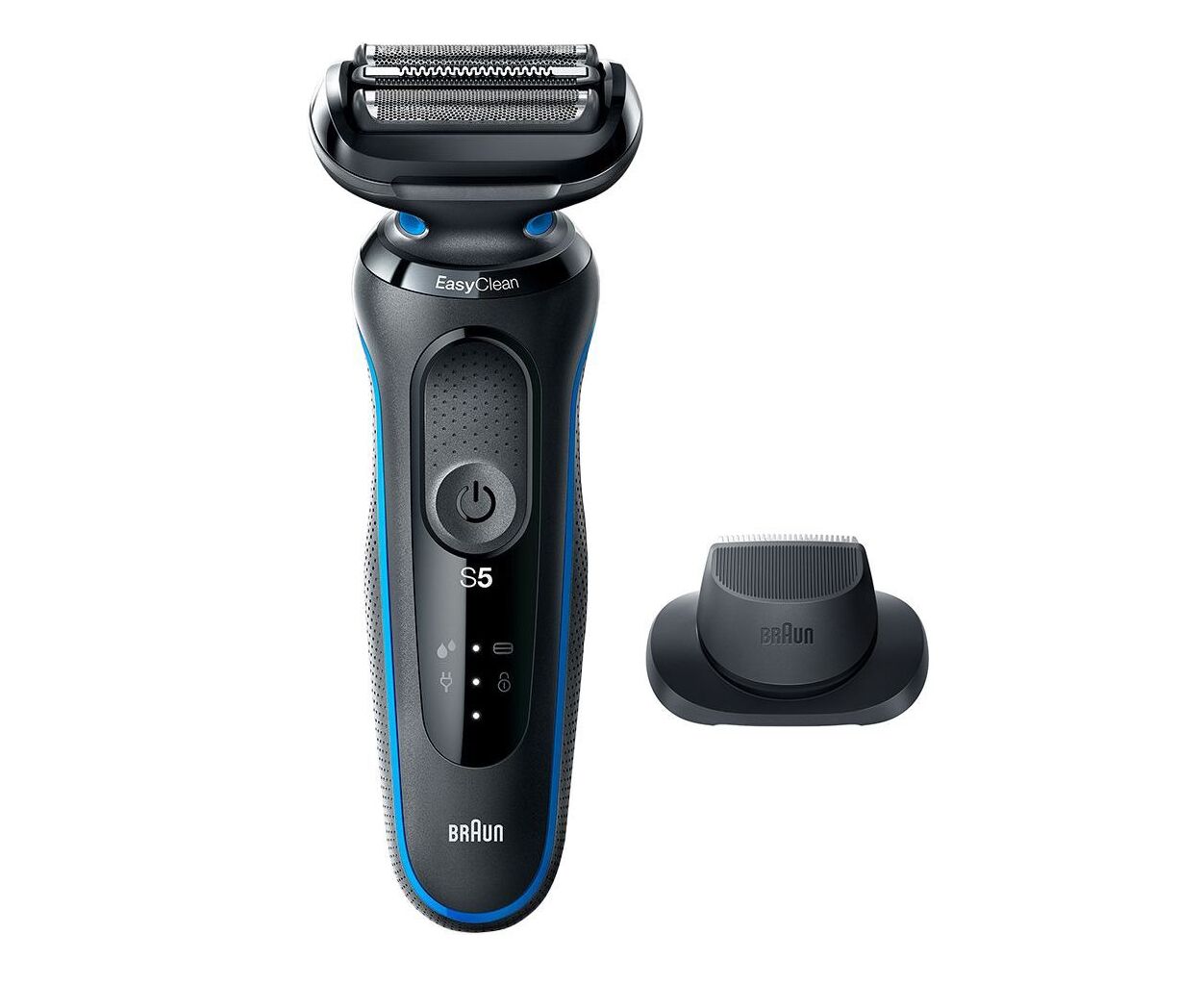 Чоловіча електробритва Braun Series 5 із 3 плаваючими лезами для легкого гоління, яке адаптується до контурів вашого обличчя. Система EasyClean забезпечує швидке та легке очищення, не знімаючи бритвену головку. Літій-іонний акумулятор забезпечує до 3 тижнів гоління та швидко заряджається за 5 хвилин для 1 гоління. Електробритва на 100 % водонепроникна і дозволяє як сухе, так і вологе гоління. Сумісна із EasyClick, щоб розширити можливості вашої бритви.