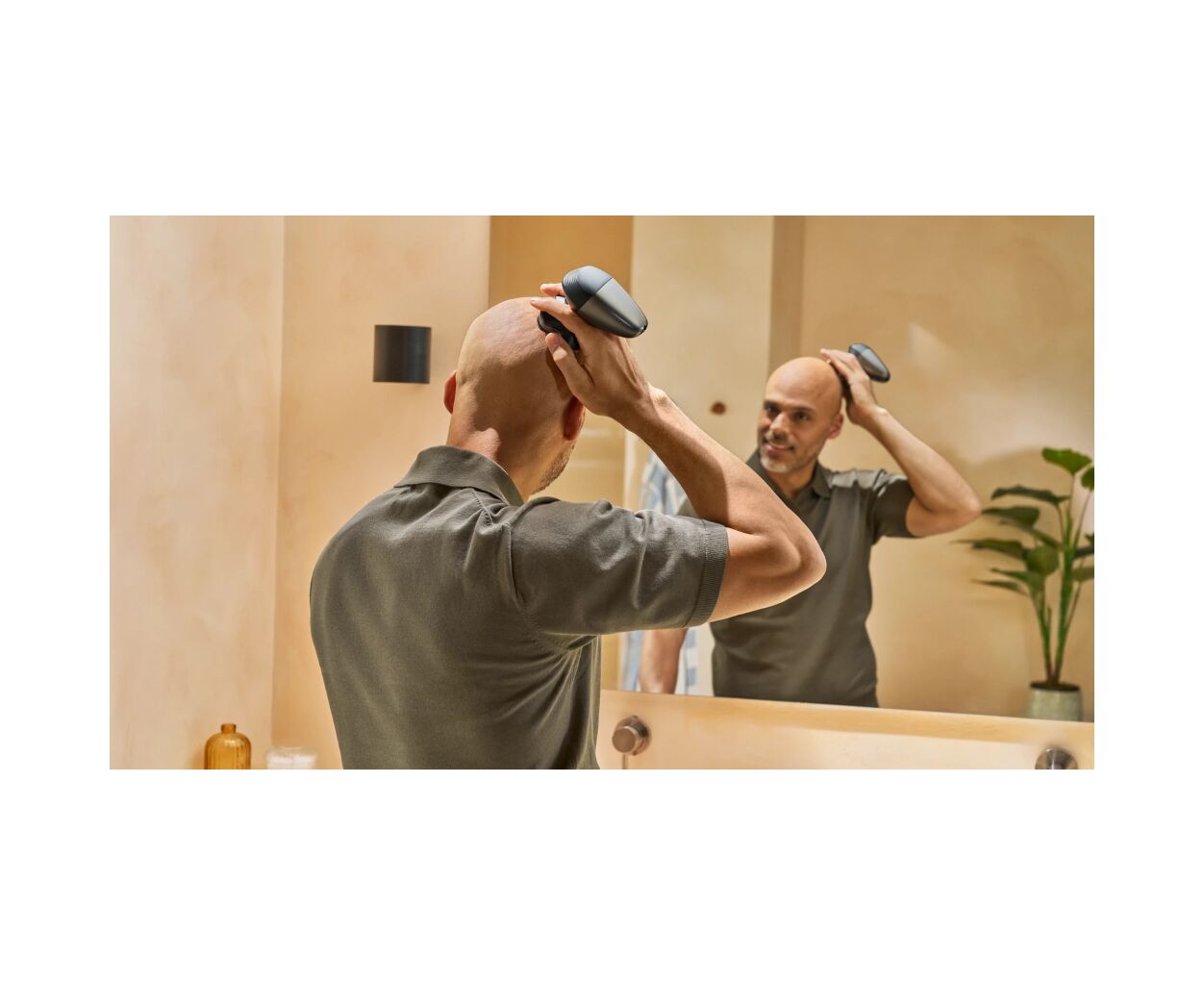 Повністю гнучкий блок повертається на 360 градусів, повторюючи контури голови для оптимального контакту зі шкірою навіть у важкодоступних місцях, уникаючи надмірних піків тиску, які можуть спричинити дискомфорт та подразнення.