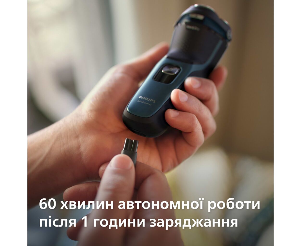 60 хвилин автономного гоління після 1 години заряджанняНадійна літій-іонна батарея повністю заряджається лише за годину, і цього достатньо приблизно для 20 голінь. Поспішаєте? Під’єднайте бритву до електромережі на 5 хвилин для 1 гоління.
