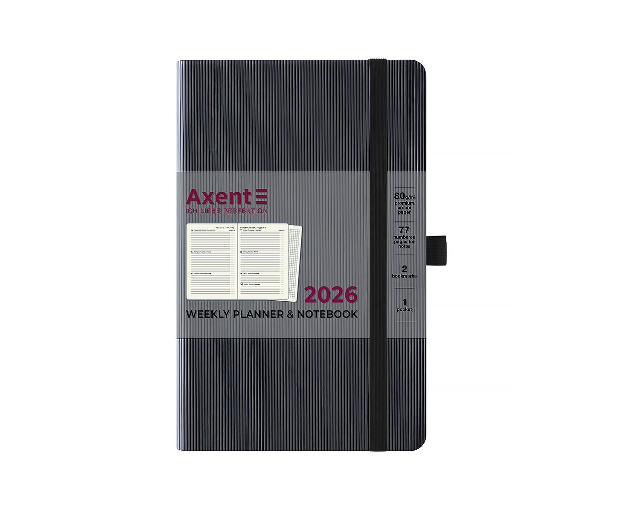 Опис Тижневик Axent датований 2026 Partner Lines 125х195, чорний (8515-26-01-A)