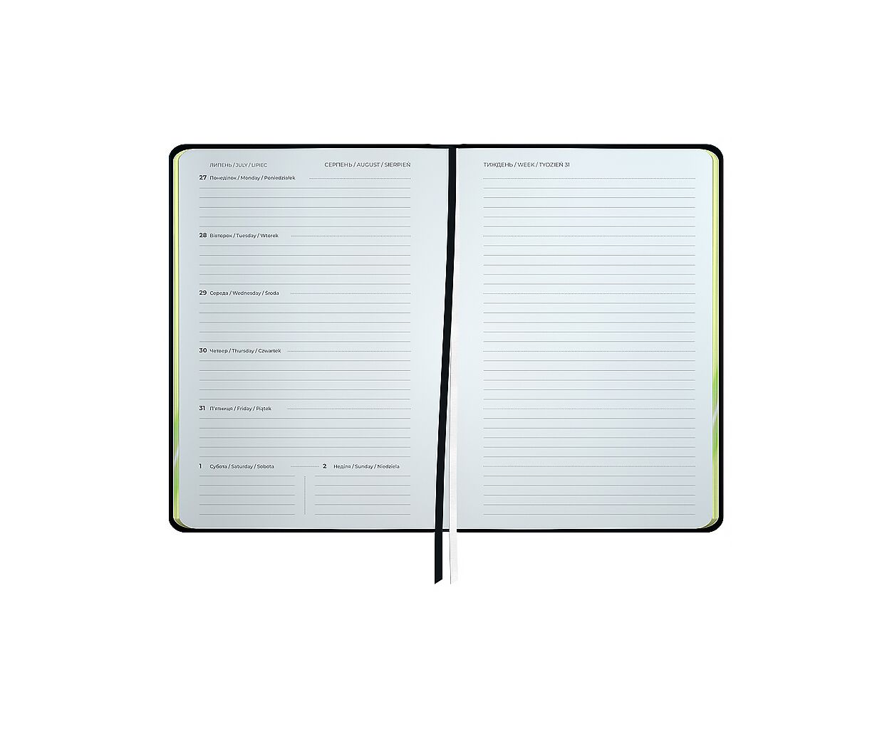 датований, А5, кількість листів - 168, 80 г/м², колір паперу - кремовий, PU, Колір - чорний, 14.5 х 2 х 21 см, 2026, українська, англійська