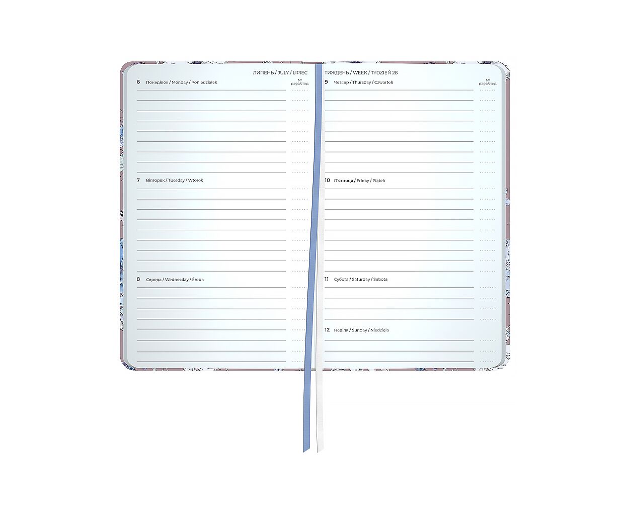 датований, А6, кількість листів - 96, 80 г/м², колір паперу - кремовий, PU, Колір - темно-рожевий, 9 х 15 см, 2026, українська, англійська