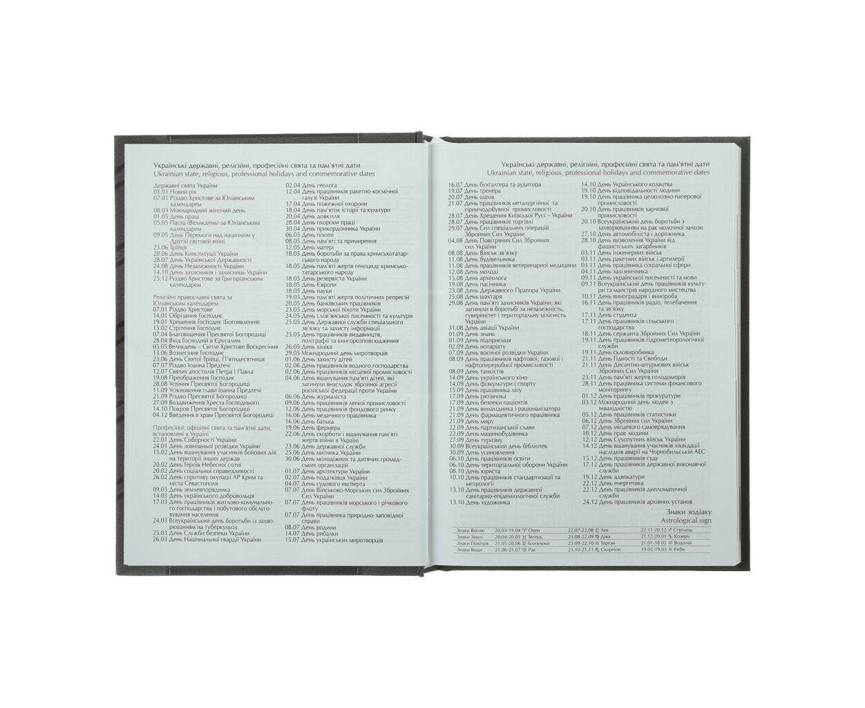 • Інформаційно-довідковий блок: національні, релігійні, професійні свята та пам'ятні дати, знаки зодіаку, телефонні коди мобільних операторів та обласних центрів України, літерні автомобільні коди країн, таблиця відстаней між обласними центрами України, довідник систем вимірювання, міжнародні знаки відповідності, знаки догляду за одягом