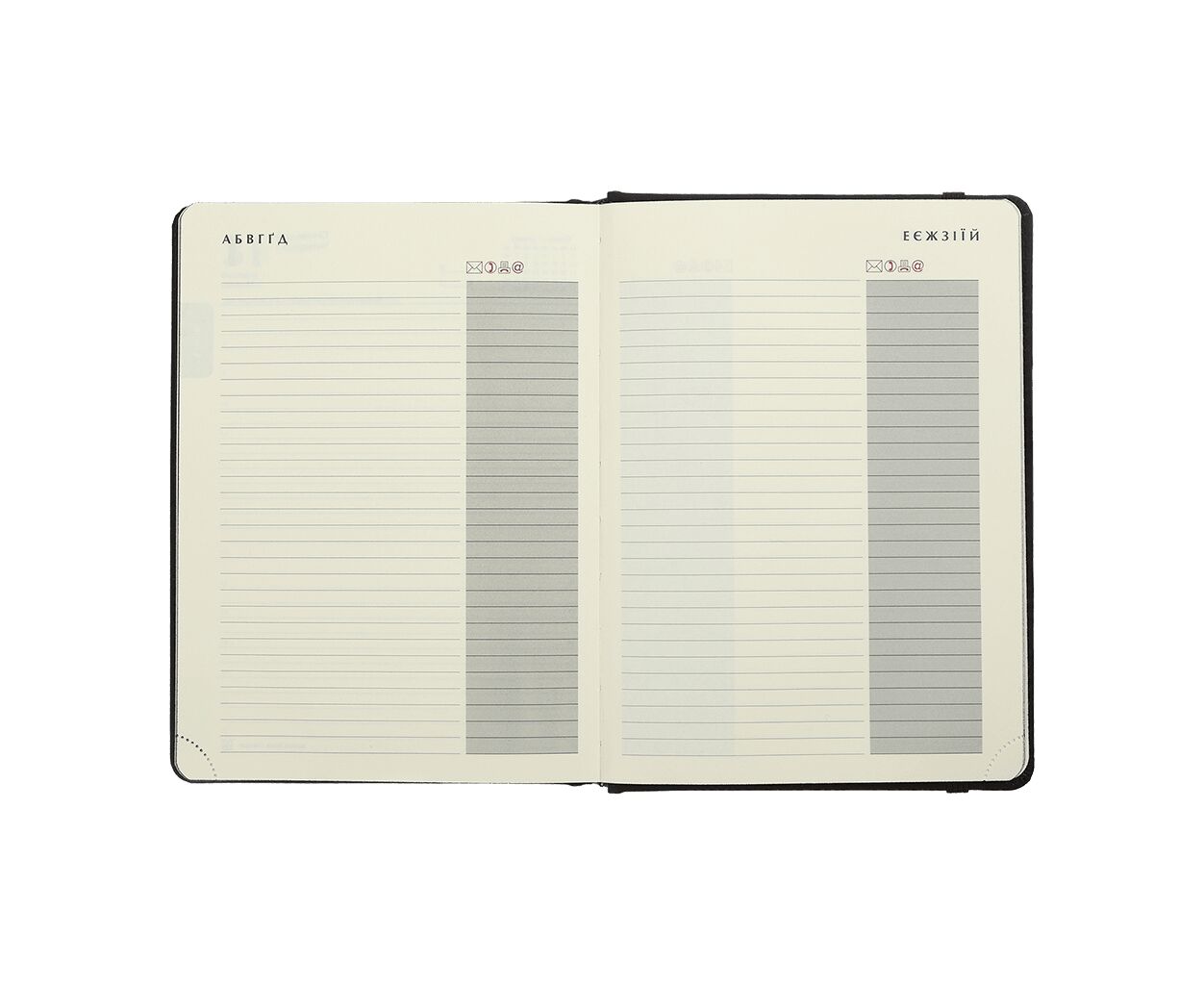 - Друк блоку в 2 кольори: сірий і бордовий