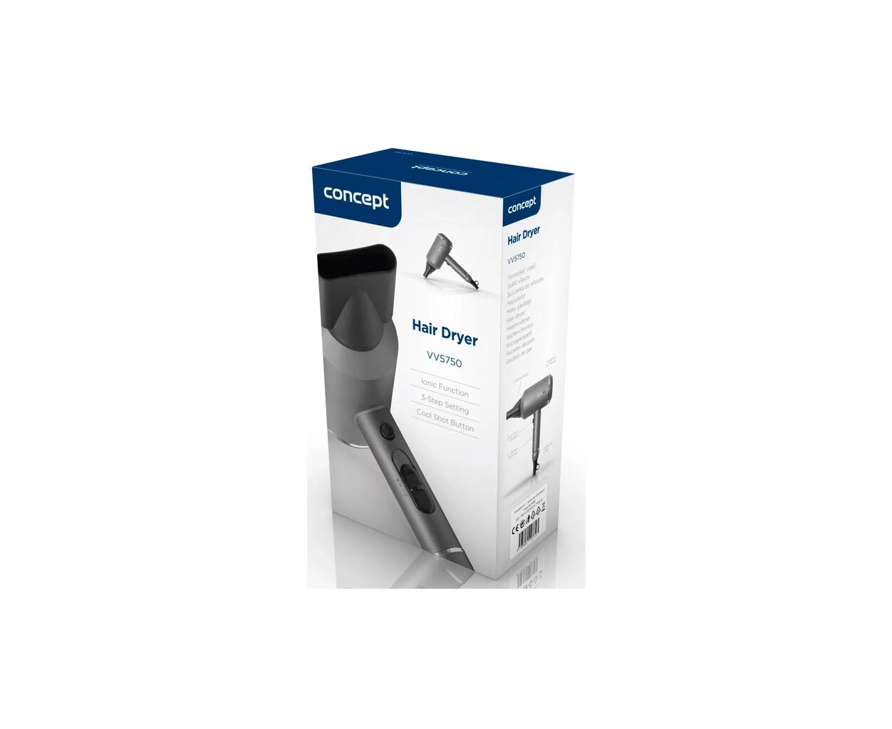Фен Concept VV5750 з потужністю 1600 Вт подбає про швидке і дбайливе сушіння вашого волосся. Він має 3 рівні потужності, 3 температурні режими та 2 швидкості потоку повітря. Він оснащений концентратором, який спрямовує потік повітря в потрібному напрямку, і функцією COOL SHOT, яка фіксує вашу зачіску шляхом швидкого охолодження повітря.