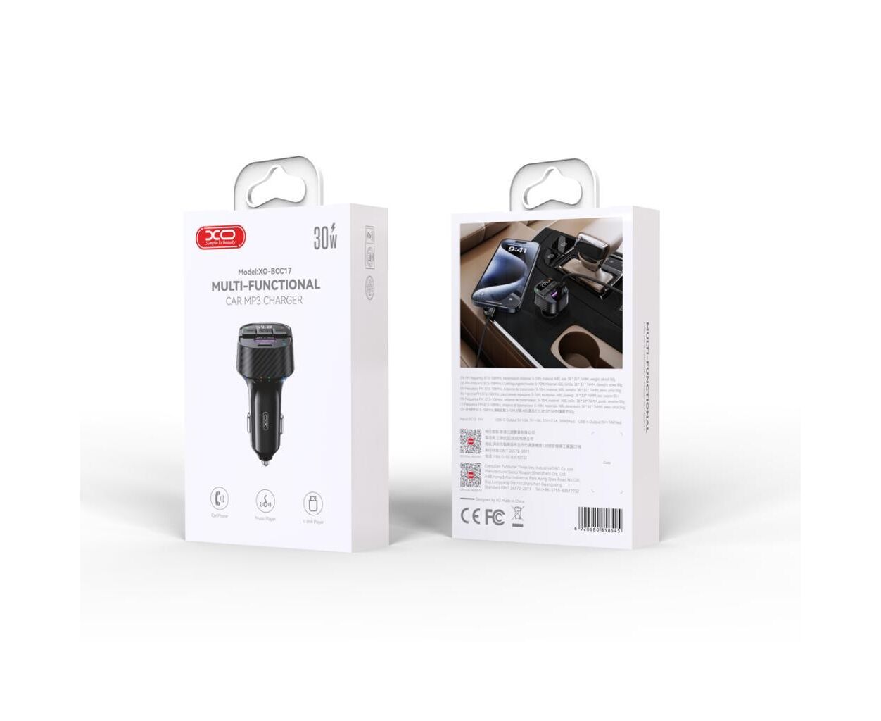FM модулятор XO BCC17 Car Charger Smart Bluetooth Dual Port PD 30W Чорний (BCC17.black)