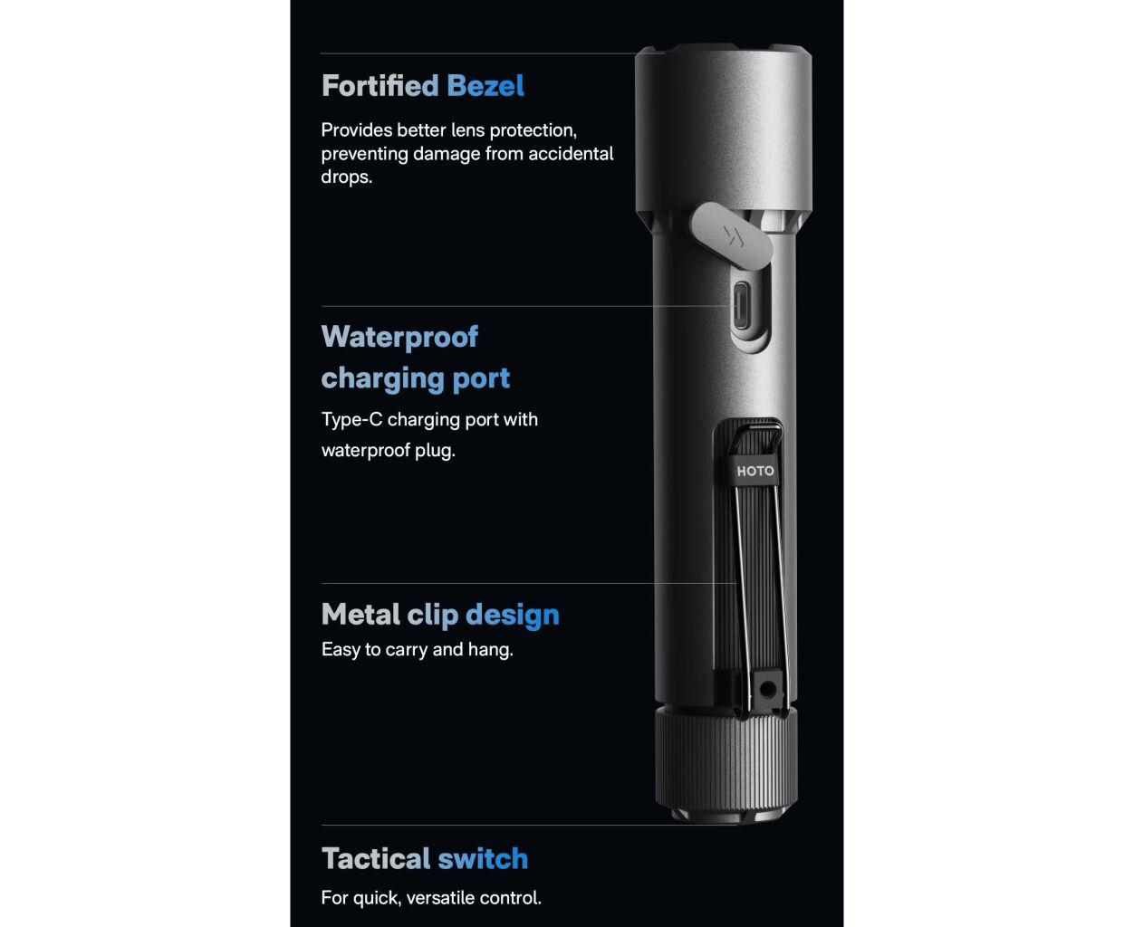 Xiaomi HOTO Flashlight Tactics 2300 є визнаним лідером серед тактичних ліхтарів, надаючи надійне освітлення, бездоганну конструкцію і універсальність використання в різних сферах життя. Це не просто ліхтар, а інструмент, який стоїть на службі вашої безпеки та зручності.